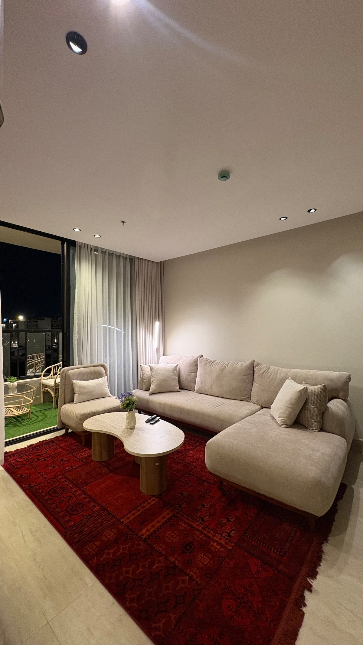 Il se compose de : chambre, salon spacieux, cuisine, salle de bains, terrasse privée. Pour une meilleure expérience, tout le confort d'un salon confortable et d'un lit confortable ont été fournis, et des besoins tels que : Smart Screen 65"- tv stc - Netflix - Internet rapide - Machine à café - Bouilloire - Thé - Bouilloire - Bouilloire - Vêtements - Réfrigérateur - Four - Shampoing - Lotion - Savon - Serviettes - Lingettes.. Elle remplace la literie et les serviettes après chaque réservation.
