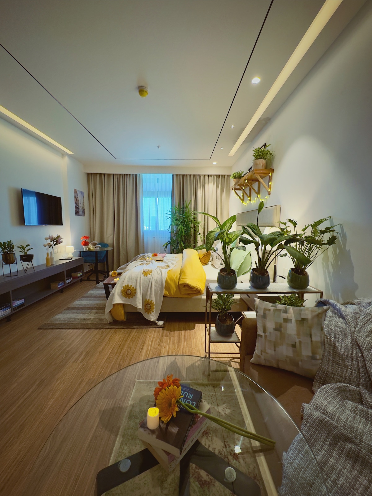 Bienvenue dans cette autre belle et confortable propriété de Tulip Homes. Il est situé au 16e étage et est un appartement entièrement neuf avec patio de jardin qui le rend unique en son genre. L'endroit est parfait pour se détendre et profiter d'une vue panoramique sur l'architecture moderne. L'appartement est équipé d'une télévision connectée (toutes les applications fonctionnent), d'un grand mur miroir, d'un lit double confortable, d'une grande armoire avec casier, d'un canapé 5 places, d'élégantes tables basses gigognes, d'un réfrigérateur, d'un four à micro-ondes, d'une plaque à induction, d'une bouilloire électrique, d'un grille-pain, d'un fer à repasser et bien plus encore.