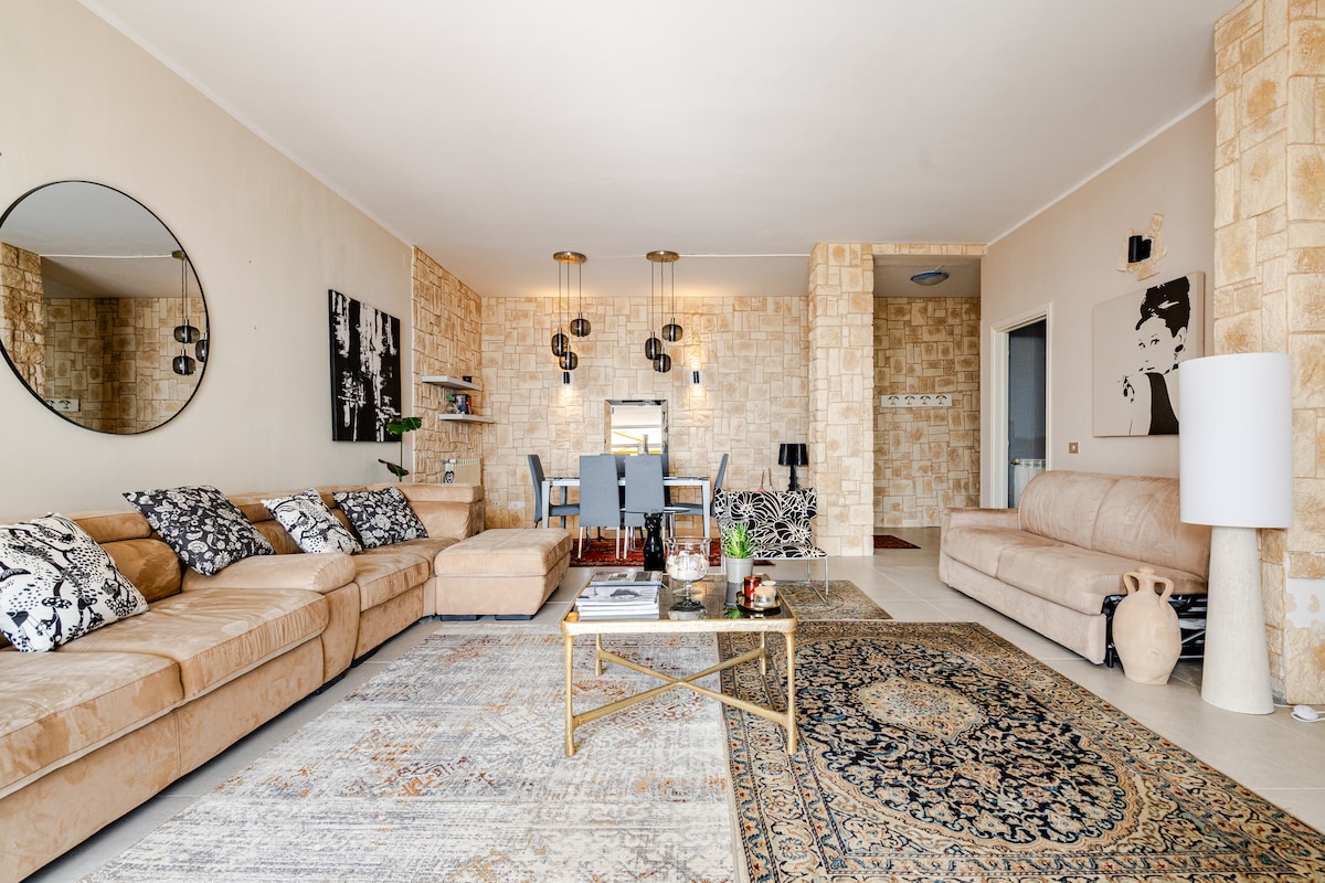 Appartement dans une villa jumelée élégamment meublée entourée de verdure de Pinamare, très proche de la plage, accessible par un passage souterrain pratique (distance 100 m). Proximité du Sporting club Pinamare (piscine, tennis, salle de sport), grande terrasse avec vue sur la mer NOTE IMPORTANTE : l’appartement est également disponible pour de LONGUES PÉRIODES