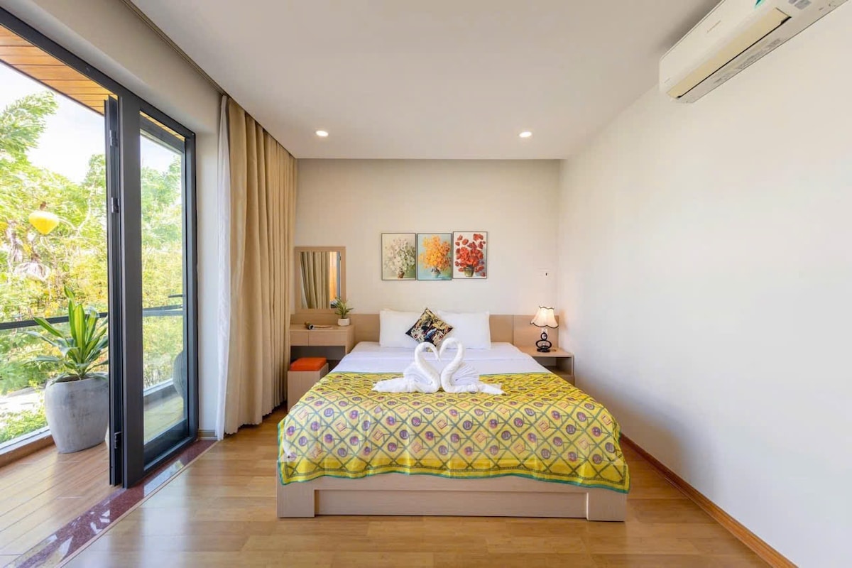 La maison spacieuse dispose d'un mobilier moderne et luxueux et d'une piscine privée. Il offre un environnement tranquille avec de nombreuses commodités à proximité, y compris des supermarchés, des parcs, des installations sportives et de délicieux restaurants. Situé au cœur de la ville de Da Nang, il se trouve à 12 km de l'aéroport international de Da Nang, à 14 km de Hoi An, à 2 km de la plage et à 1 km du Legend Danang Golf, ce qui facilite les déplacements vers des destinations célèbres telles que My Khe Beach, Dragon Bridge, Son Tra Peninsula et Hoi An.