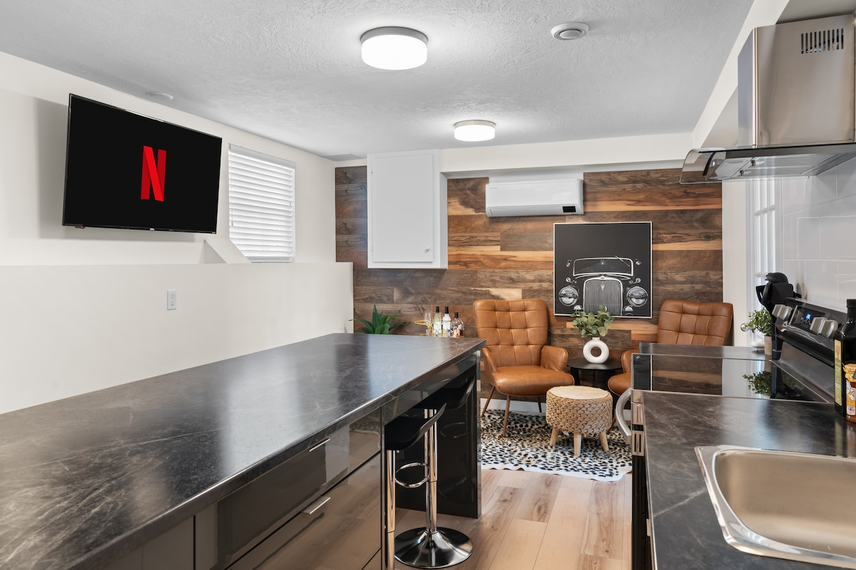 Appartement confortable d'une pièce au sous-sol avec entrée privée, un lit queen size, un canapé-lit, une cuisine entièrement équipée et une salle de bain privée. Profitez d'une connexion Wi-Fi gratuite, d'un parking gratuit, d'une buanderie et d'un magnifique sentier de randonnée juste à côté. Emplacement paisible à proximité des commerces, des restaurants et des transports en commun. À environ minutes de l'aéroport. Ce logement élégant est parfait pour les voyages en solo ou en groupe.