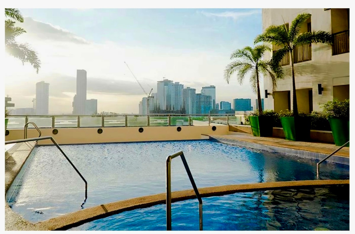 Spacieux. Simplifiez-vous la vie dans ce logement paisible et central. Si vous recherchez un logement abordable, minimaliste et confortable pour séjourner à Quezon City, nous avons ce qu'il vous faut ! Détendez-vous dans les centres commerciaux à proximité ! Très accessible aussi puisqu'il est à 2 minutes à pied de la station MRT & Carousel. Avec une vue imprenable sur la piscine à débordement sur le toit.
