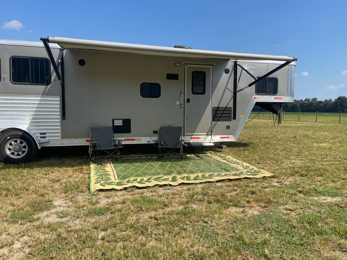 Venez séjourner dans une ferme équestre. Avec votre propre caravane pour chevaux pour rester à l'intérieur. Avec plus de 15 acres clôturés. Vous aurez beaucoup d'espace pour vous dégourdir les jambes. Vous pouvez vous détendre dans la caravane ou passer du temps dans la cheminée de la communauté. N'hésitez pas à explorer également la grange. Vous y trouverez de nombreux jeux dans le dernier stand, y compris le cornhole. Venez caresser et aimez les chevaux. Ils aiment toute l'attention.