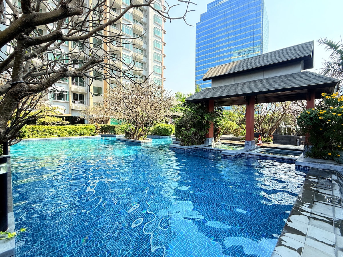 Confortable et spacieux 1BR Asok près de Nana + piscine sur le toit !