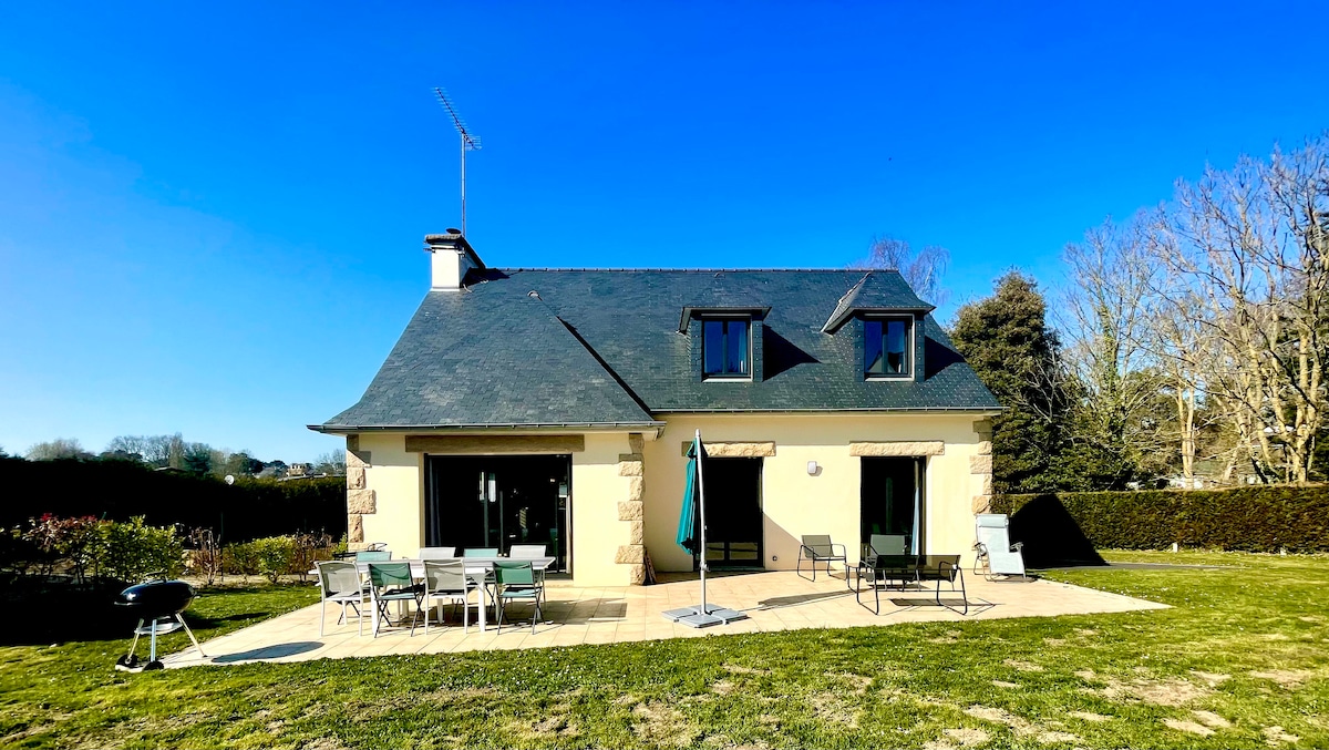 Magnifique maison contemporaine, à quelques kilomètres de Dinan et à 25 mn des plages. Au milieu d'un parc de 10 hectares, la maison se compose de : - 5 grandes chambres décorées et équipées de sa salle de bain et de WC. - Un immense salon, cheminée, bibliothèque… - Une grande cuisine ouverte et complètement équipée. - Une piscine chauffée (mai/juin/juillet/août), salle de sport, terrain de padel. Maison moitié prix janvier/février/ mars/avril/septembre/octobre/ novembre.