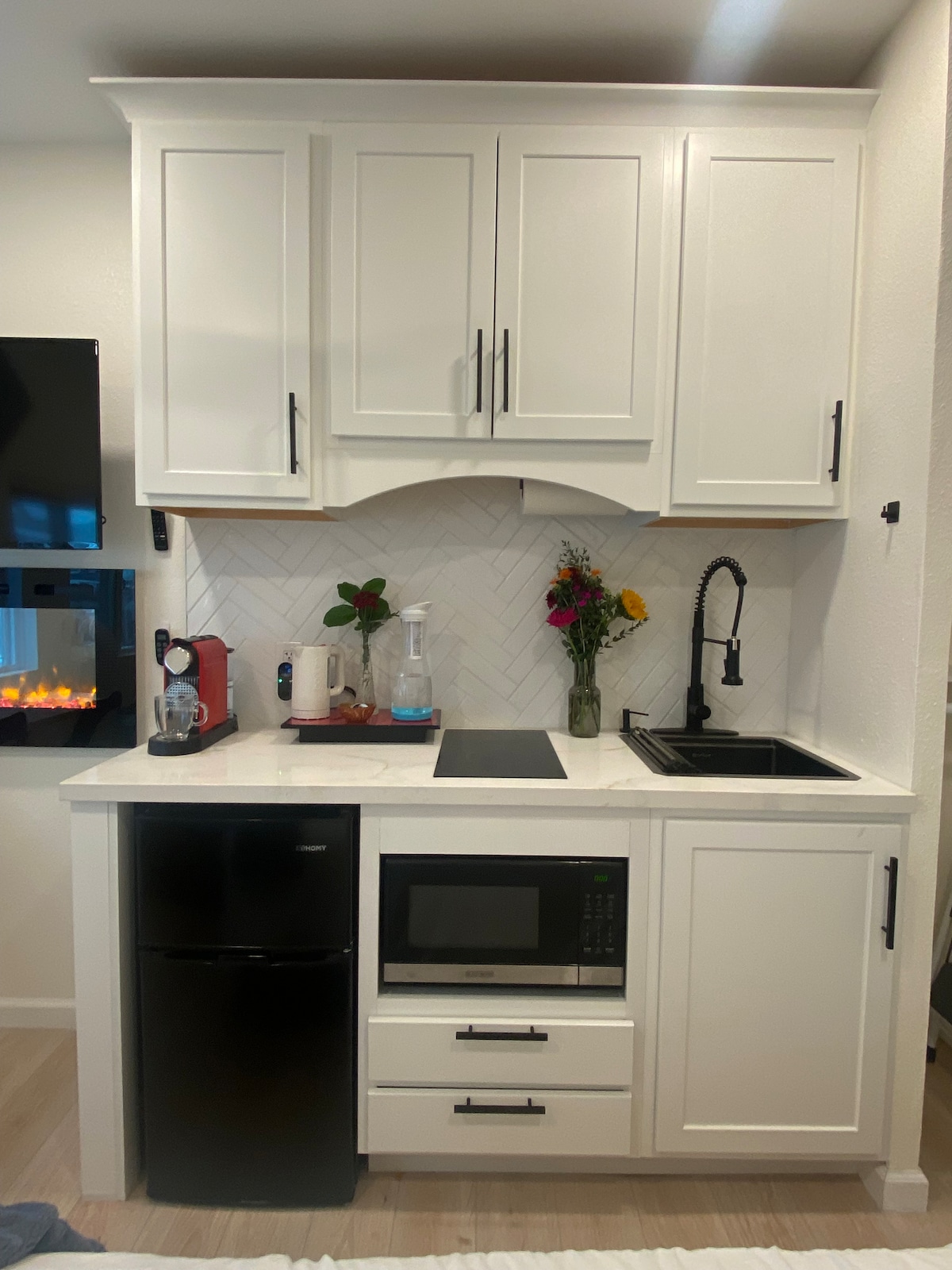 Bienvenue dans notre paisible retraite au bord du lac, nichée au bord d'un lac serein. Cet espace charmant offre le mélange parfait de confort moderne et de beauté naturelle. Emportez de la lumière et détendez-vous dans votre toute nouvelle micro-maison ensoleillée. Confortable et minimaliste, mais entièrement équipé avec tout le nécessaire, y compris une entrée privée, une connexion Wi-Fi, une terrasse, un foyer extérieur, une salle de bain, un lave-linge/sèche-linge, une kitchenette et un mini-réfrigérateur.