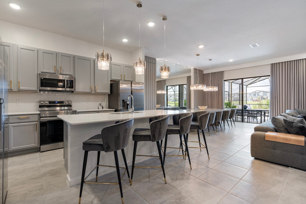 Maison de luxe moderne de 3 000 pieds carrés, avec 5 chambres, au complexe Encore de renommée mondiale à Reunion. Dotée de 5 chambres, 5 salles de bain et demie, une salle de jeux, une belle cour arrière, une piscine privée et un spa. À 6 minutes du supermarché Super Walmart et Publix. À 15 minutes des parcs Disney. À 15 minutes de Disney Springs. À 15 minutes des magasins d'usine Premium Outlets. À 20 minutes des studios Universal À 20 minutes des attractions d'International Drive. *VEUILLEZ VOUS ASSURER DE LIRE LE RÈGLEMENT INTÉRIEUR*