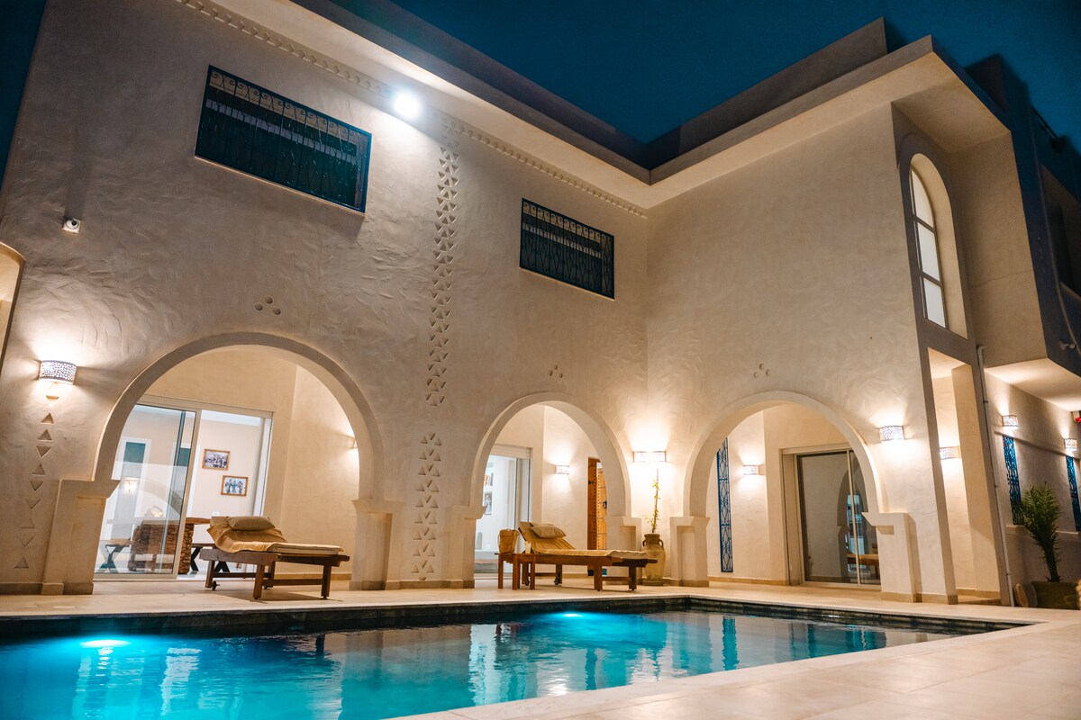 La piscine et les espaces extérieurs sont partagés entre les quatre logements de la résidence. Nous accueillons avec plaisir des voyageurs calmes et bienveillants, qui prennent soin des lieux et qui respectent la tranquillité des hôtes et du voisinage. Nous nous situons à proximité du phare emblématique de Djerba, d'une des plus belles plages de l'île et du complexe culturel Djerba Explore. A 5 minutes à pieds, vous trouverez une station de taxis, des épiceries, restaurants et cafés.