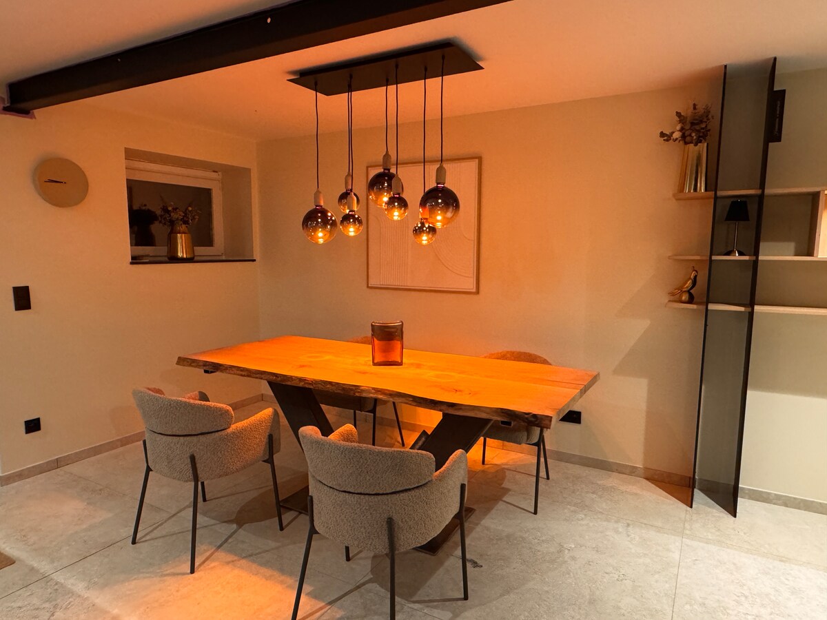 Klein volledig gerenoveerd huisje in de Belgishe Ardennen. In de badkamer bevindt zich een inloop douche en een bubbelbad. De infraroodcabine geeft jouw spieren en gevrichten de nodige warmte om volledig tot rust te komen. Op het 1ste verdiep vindt u de keuken met eet eiland en het salon met digitale tv/wifi. Op de 2de verdieping is de kamer. Er is geen tuin aan de woning maar een groot terras aan de voorkant met zicht op het kerkplein. Het huisje is volledig uitgerust met al het nodige confort.