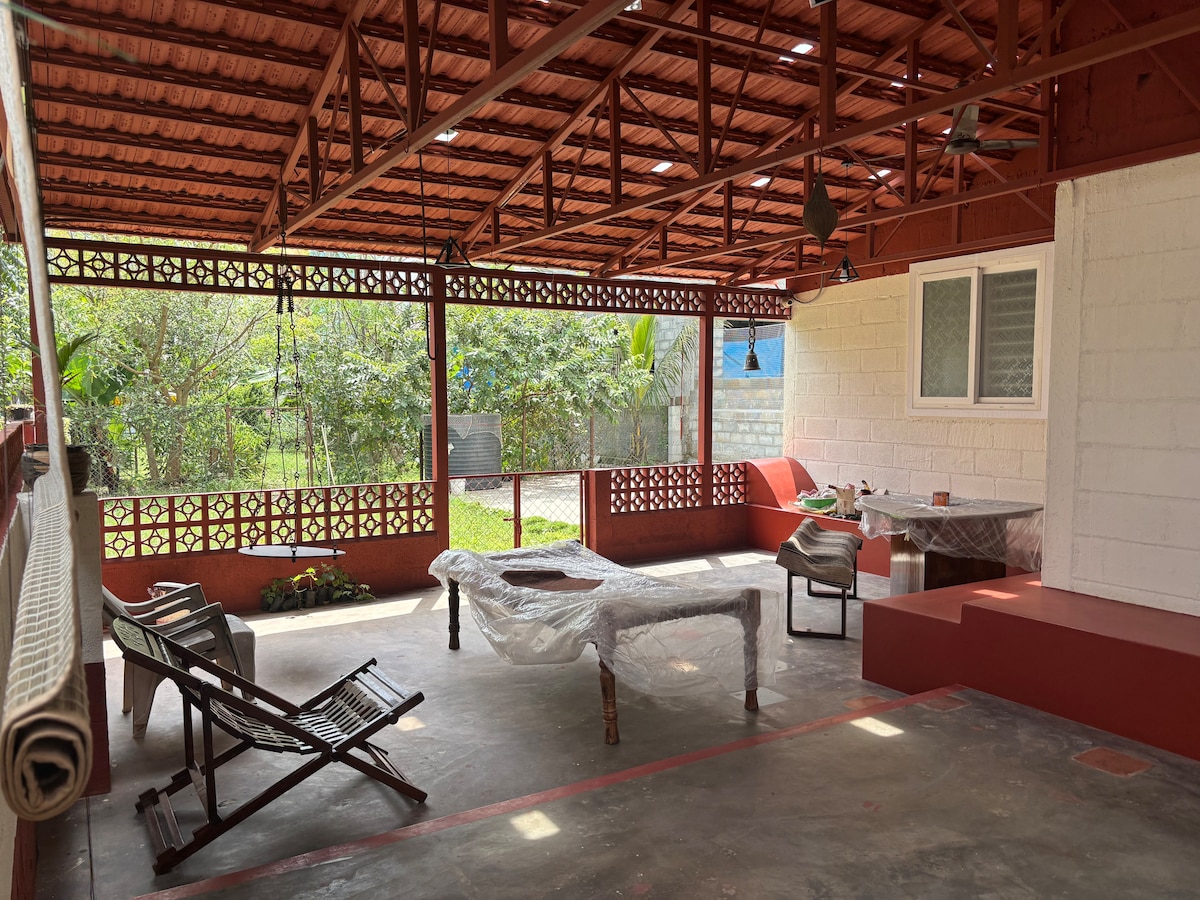 Contemplez la colline et les étoiles ! Bienvenue à « Taare », un chalet situé à la ferme Anemane. Détendez-vous dans notre retraite à la périphérie de Bangalore, en bordure du parc national de Bannerghatta. Découvrez un espace rustique confortable, réveillez-vous aux appels des oiseaux et immergez-vous dans la faune ; suivez les sentiers de la nature, ou apprenez-en un peu plus sur la réintroduction d'espèces sauvages et la cuisine sur un poêle à bois, une évasion parfaite de l'horloge et du chaos urbain. Si la vie urbaine vous appelle, des cafés animés et des centres commerciaux sont à quelques minutes en voiture.