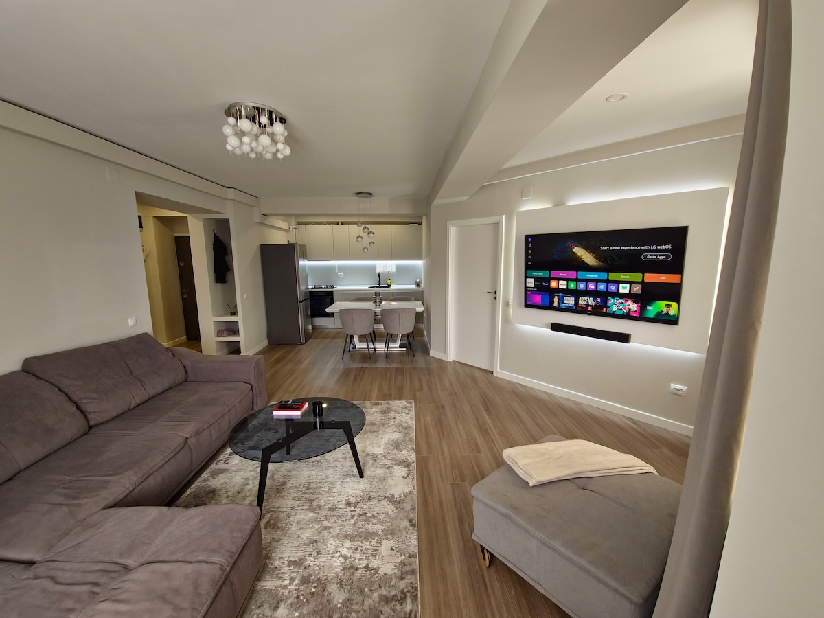 Découvrez le confort moderne du RoseWood Boutique Apartment, situé dans la Green Future Residence, un immeuble offrant aux voyageurs un accès payant à un espace spa avec piscine intérieure, sauna et équipement de fitness. Notre appartement est conçu avec une cuisine entièrement équipée, des téléviseurs connectés et des équipements essentiels. Profitez de la place de parking dédiée dans le parking souterrain. Explorez la charmante Sinaia en toute simplicité, mêlant esthétique contemporaine et détails réfléchis pour un séjour rajeunissant !