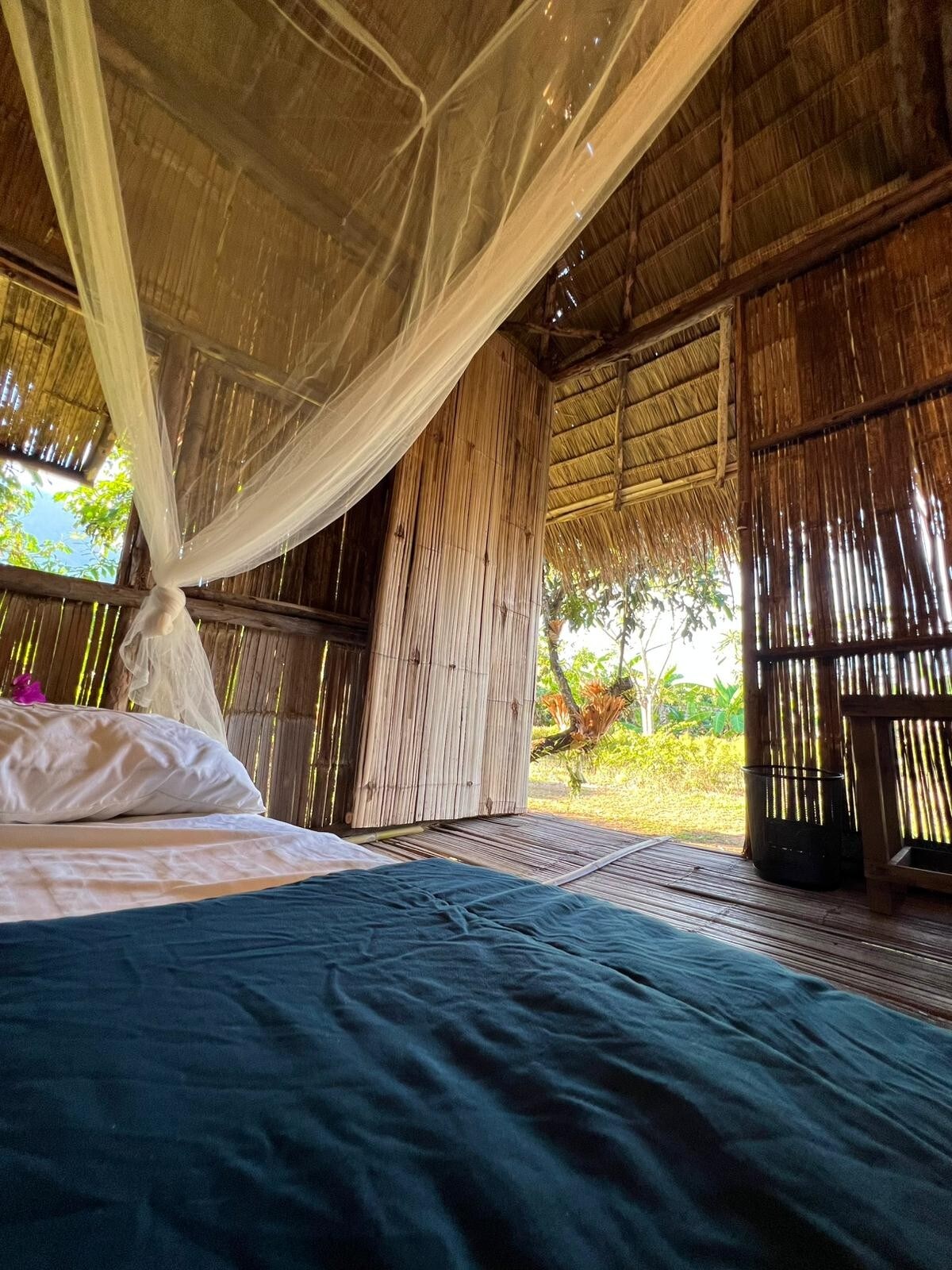 Profitez des sons de la nature, de la compagnie des animaux, des couleurs changeantes du lever et du coucher du soleil. Cette chambre est une cabane de deux étages construite en bois de teck ancien et en bambou naturel. Il dispose de son propre jardin privé, d'une douche semi-extérieure avec baignoire en berceau en bois, de toilettes privées et d'un salon. Elle possède la plus belle vue de notre ferme. Avec un balcon face à la spectaculaire vue sur la montagne et surplombez toute la ferme sous tous les angles. C'est la solution idéale pour les couples et les familles.
