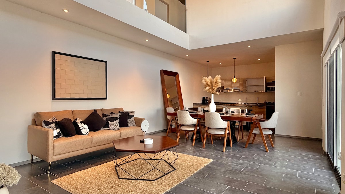 Vivez un séjour unique à San Miguel de Allende, à seulement 10 minutes du centre-ville. Cette propriété de luxe dispose de jardins spacieux, d'une piscine chauffée, d'un jacuzzi, de courts de tennis et de paddle, ainsi que d'un foyer confortable pour les rassemblements en soirée. L'appartement comprend 2 climatiseurs, une télévision connectée, un lave-linge, une cuisine entièrement équipée et tout le confort moderne. Conçu avec des finitions élégantes et des équipements modernes, il est parfait pour se détendre ou profiter en famille et entre amis. ¡Découvrez le charme de San Miguel avec confort et style !