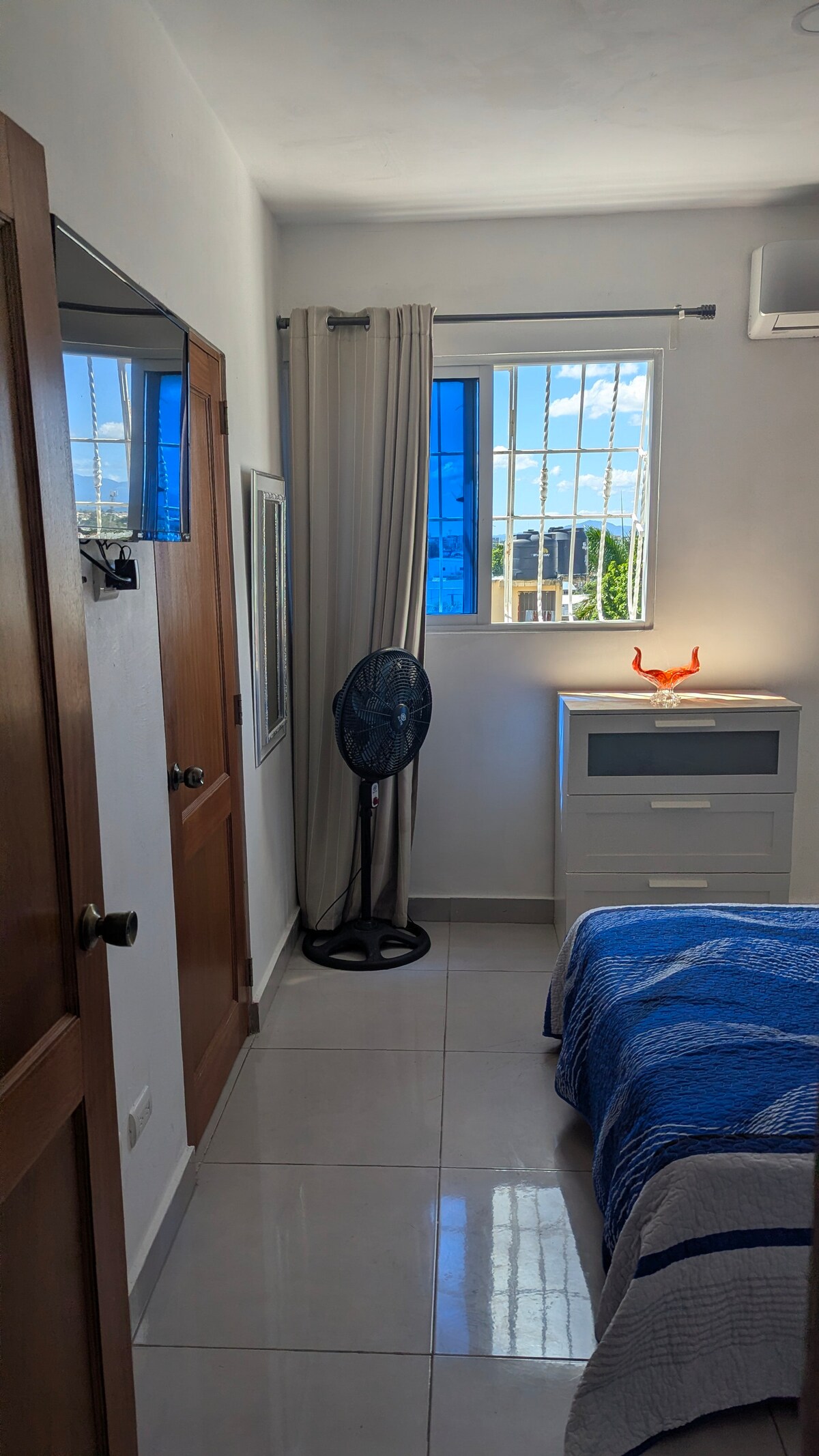 Cet appartement est situé en cœur de ville, où vous aurez tout à quelques minutes. Il dispose de 2 chambres, chacune avec salle de bain privée, demi-salle de bain dans le salon et une cuisine complète. parking. À 3 minutes du Malecón et du parc ibéro-américain, et à seulement 1 pâté de maisons des supermarchés, des restaurants tels que Pizza Hut, KFS MCDONALD Papa John 's, Wendy' s, Jade, pharmacies de salle de sport. En outre, vous serez à 5 minutes à pied de l'Université UASD et à 10 minutes en voiture de la zone coloniale.