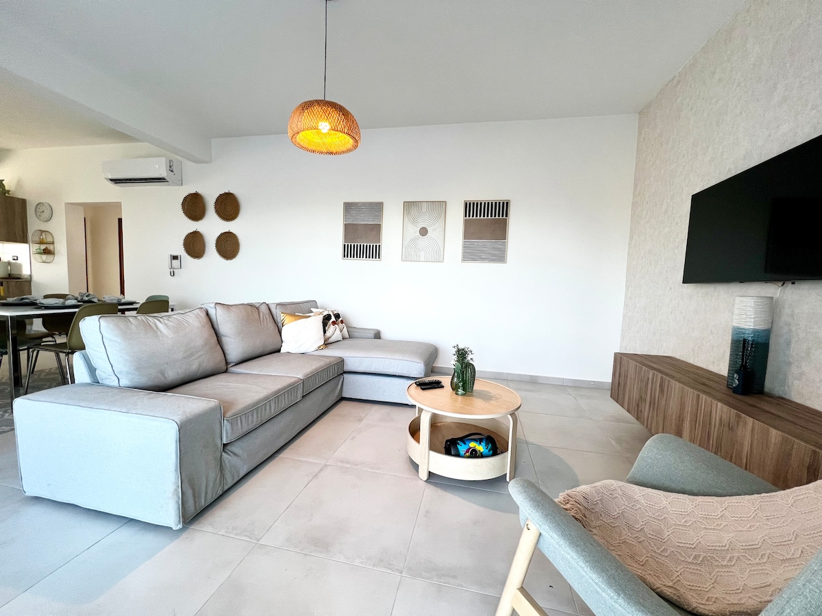 Bienvenue dans un appartement confortable au dernier étage à seulement 7 minutes à pied de la plage. Cet espace de 2 chambres et 1 salle de bain dispose d'un balcon de 225 m² avec un coin repas extérieur et d'une vue lointaine sur la mer. Profitez d'un mobilier en bois d'Ilumel, d'une cuisine entièrement équipée, d'une télévision connectée et de plantes de vie dans chaque pièce. L'appartement comprend une climatisation, des ventilateurs, un lave-linge avec sèche-linge et une connexion Internet haut débit gratuite. Situé à proximité de supermarchés, bars et restaurants, il est parfait pour une escapade paisible sur la côte.