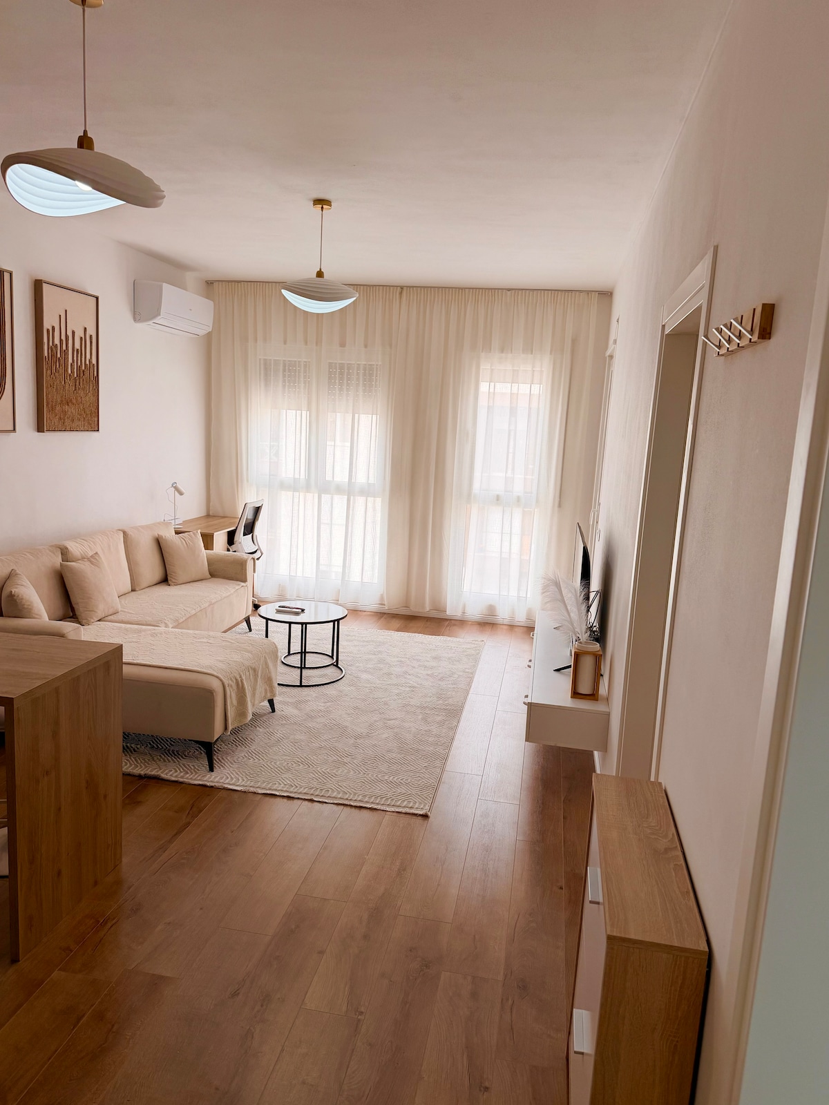 Bienvenue dans notre appartement d'une chambre élégant et confortable, parfait pour les couples, les voyageurs en solo ou les petits groupes ! Situé dans le centre de Kamëz, notre appartement offre un accès facile à tout ce dont vous avez besoin. À seulement 10 minutes de l'aéroport international d'Albanie et à 15 minutes du centre-ville de Tirana, c'est une base idéale pour les voyageurs d'affaires et de loisirs. À l'intérieur, vous trouverez une cuisine entièrement équipée, un coin salon confortable avec un canapé-lit et un décor moderne et accueillant qui vous fera vous sentir comme chez vous !