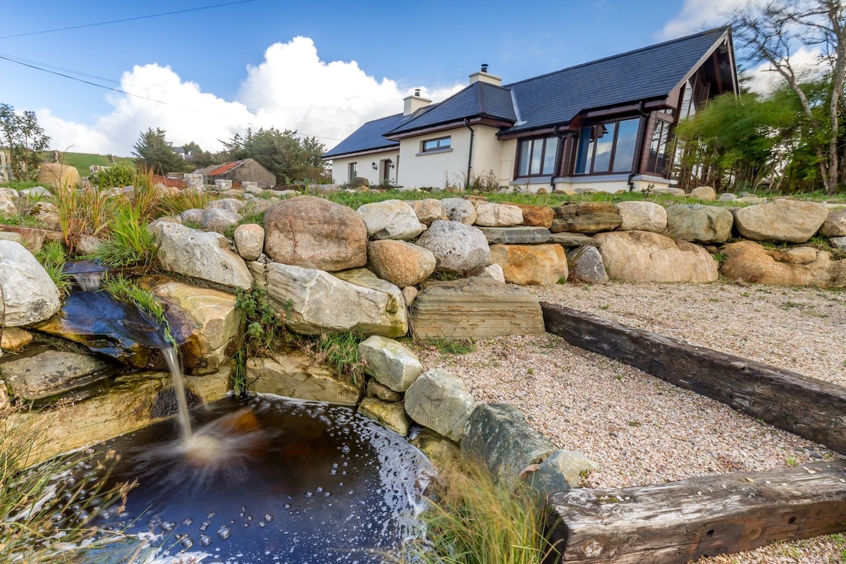 Rejoignez-nous au « The Red Bridge Cottage » dans les belles collines de Donegal. Une petite maison récemment rénovée à partir d'un hangar. Deux chambres, une salle de bain et une cuisine spacieuse et un salon. A quelques petites bizarreries qui lui donnent une sensation de vieux chalet irlandais moderne. Jardin arrière privé et entièrement clos avec jacuzzi et brasero entouré de collines et de champs. Belles promenades dans les environs. À exactement 1 mile du petit village de Glenties. À dix minutes en voiture de la ville d'Ardara ou de la plage de Narin.