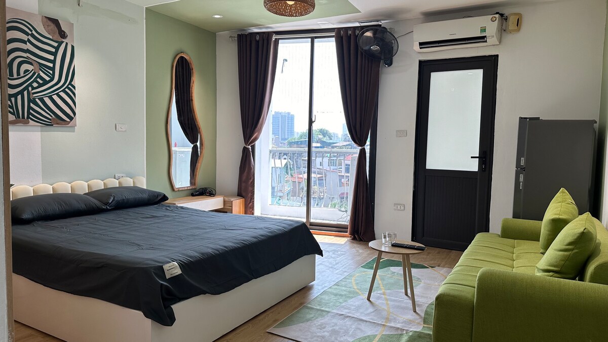 Tout est simple dans cet endroit paisible et central. ♥ Superficie : 30 m2, avec balcon ouvert, beaucoup de lumière naturelle et d'air frais ♥ Résidence privée, calme et sécurisée pour y vivre. Une belle chambre moderne parfaite pour un couple ou un célibataire. Belle vue. ♥ Matelas très moelleux Situé dans une ruelle calme dans la rue de la gastronomie, au centre du quartier de Dong Da Il est facile de se rendre dans le centre-ville en transports en commun, en moto, en taxi.