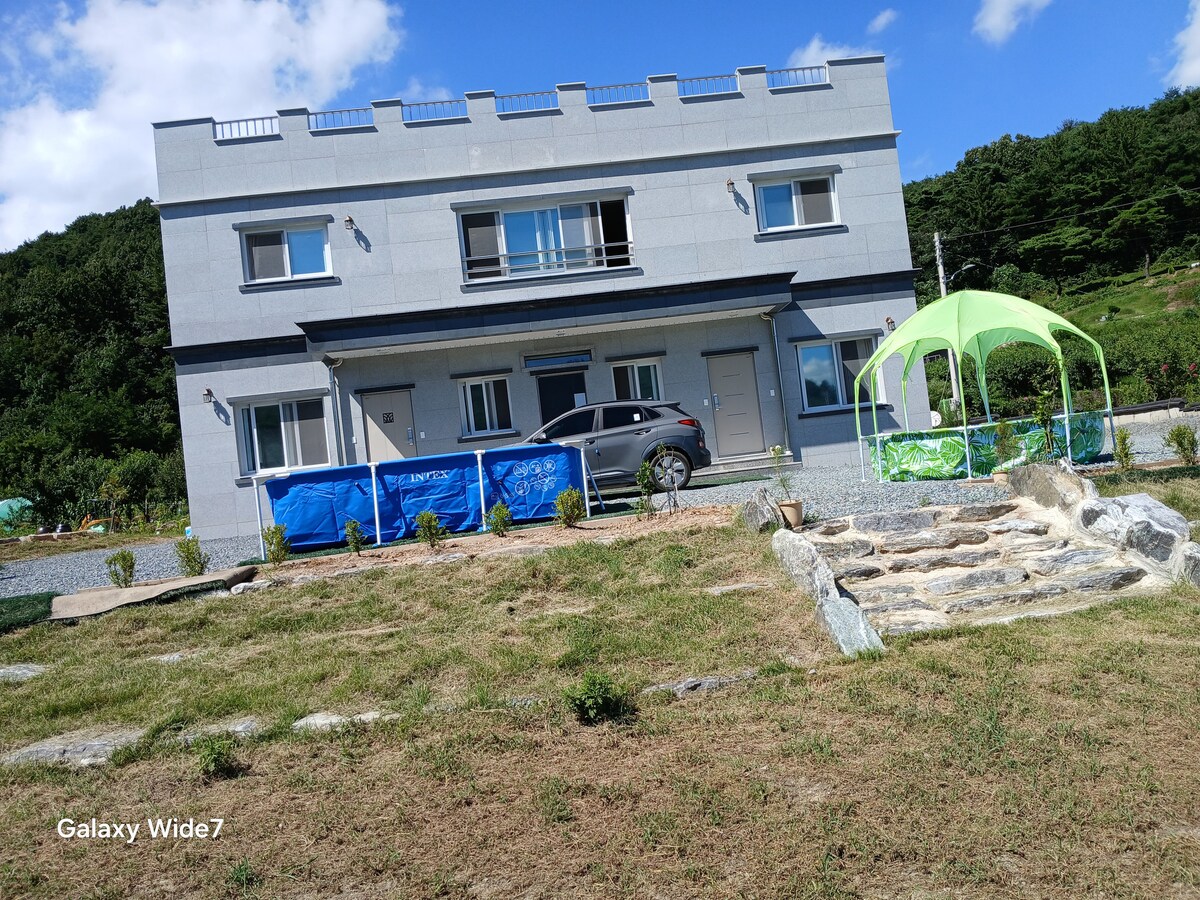Ce logement spacieux est parfait pour toute la famille. Que diriez-vous d'un réservoir spacieux devant, d'un sentier de forêt de pins à l'arrière et d'une pension romantique avec une superbe vue dans la cour spacieuse. Et le transport est bon, et il est bas car c'est un nouveau bâtiment situé à 40 minutes de Daegu.