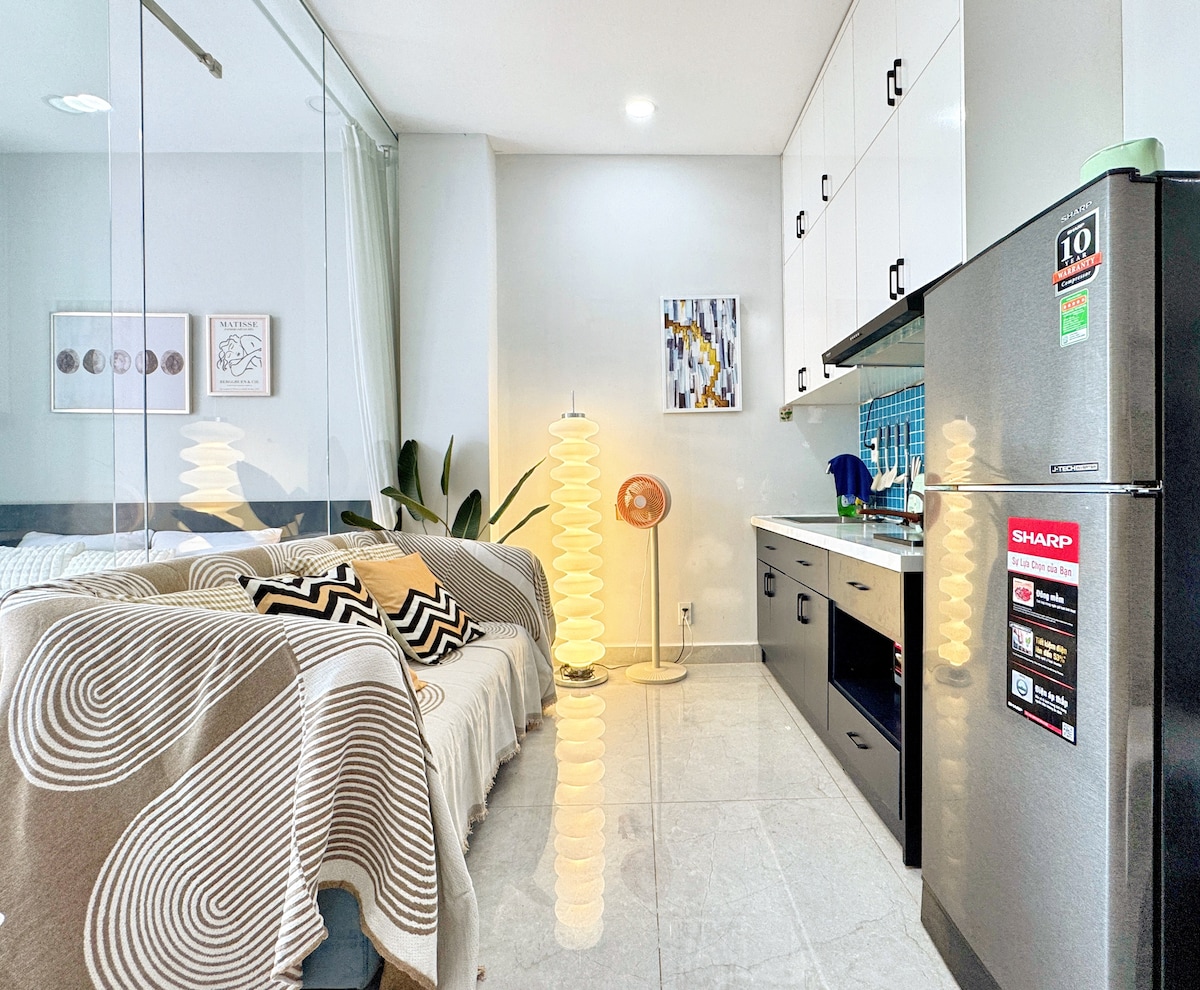 Appartement au design élégant de style wabi-sabi dans le complexe D1Mension Residences, au cœur du 1er arrondissement. Espace artistique et luxueux, comme dans une station de haut standing. Gamme complète d'équipements : piscine sur le toit, spa, sauna, salle de sport, salle de réunion et de travail privée, jardin avec bassin à poissons, espace barbecue, aire de jeu pour enfants, pizzas de 10 cm directement dans le hall. La chambre comme le balcon sont lumineux et aérés, offrant une expérience haut de gamme et unique. ✨