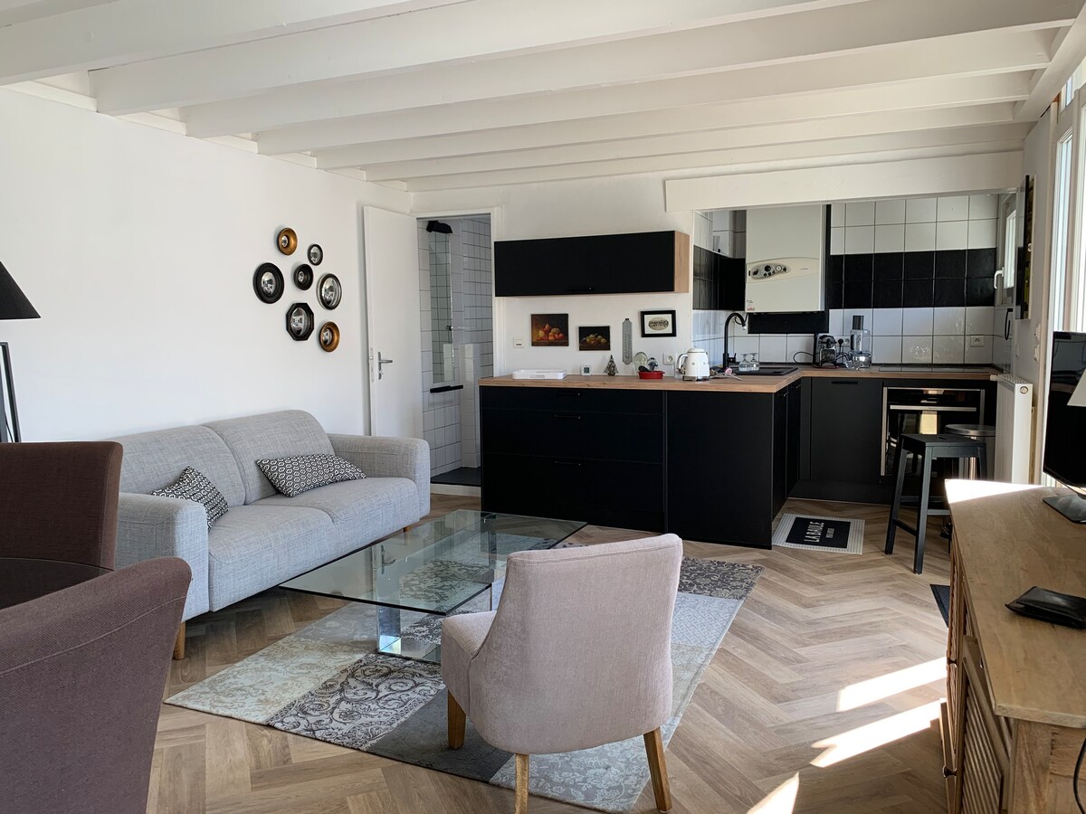 🏡 T2 de 50 m² au calme, dans une cour privée au cœur de Montoir-de-Bretagne. 🛍️ Commerces et bus à 200 m, 🚗 à 2 km d’Airbus et 10 min des Chantiers de l’Atlantique. 🌊 Plages à proximité (Saint-Brevin, La Baule…). Wi-Fi fibre ⚡, cuisine équipée 🍽️, ventilateur de plafond, lave-linge 🧺, machine à café ☕( Tassimo). Linge fourni 🛏️. Cave dispo pour vos vélos 🚲. Bienvenue ! 😊 Les animaux sont les bienvenus mais ils doivent juste être déclaré au moment de la réservation. Merci !