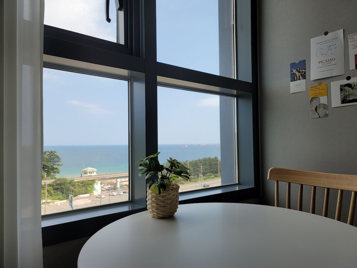 En face de l'🔸hébergement, il y a une promenade sur la plage, une plage de sable et une mer de l'Est claire. 🔸Notre chambre est située au 10e étage, de sorte que la chambre et le salon ont une bonne vue sur l'océan. Il y a des bols et des ustensiles de cuisine (casseroles, poêles à frire, cuiseuses à riz), des cuisinières à induction et des verres à vin qui peuvent être utilisés par🔸 4 personnes. Vous pouvez également cuisiner légèrement. La 🔸literie est propre car elle est remplacée à chaque séjour. Sur la table du 🔸salon, il y a des instructions sur la façon d'utiliser le logement. Veuillez lire et suivre attentivement l'impression. Il y a un magasin de proximité électrique🔸 au premier étage du bâtiment. Il y a un parking gratuit à côté de l'🔸immeuble à côté de l'immeuble, donc c'est pratique. 🔸Il y a des restaurants, des dépanneurs, des e-marts et des épiceries autour de la propriété. C'est🔸 un nouveau bâtiment facile à trouver, accessible en 5 minutes en taxi depuis la gare KTX Mukho. Les attractions touristiques🔸 à proximité comprennent la grotte de Cheongok, qui se trouve à 3 minutes en voiture, et la belle vallée de Mureung, Chuam Candelabra Rock, Lighthouse et Nongoldam-gil sont à moins de 20 minutes en voiture de la propriété. Une réduction sera appliquée pour les nuits consécutives d'🔸une semaine ou plus. Nous vous donnerons le numéro de serrure numérique à la porte d'entrée le jour de l'🔸arrivée.