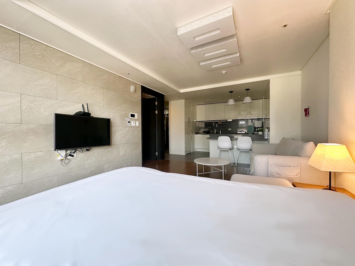※ C'est un logement légal enregistré pour l'hébergement. (L'emplacement ou le design des meubles et des accessoires peut varier légèrement.) ※ Veuillez réserver avec le nombre exact de personnes. Le prix de base est pour 2 personnes maximum et peut accueillir jusqu'à 3 personnes, à partir de 3 personnes, un supplément sera facturé. ※ Le mot de passe de la serrure de la porte d'entrée, qui n'est utilisable que par les clients pendant leur séjour, est sécurisé. ※ Nettoyage de la chambre en supplément Cheongsaecheong, Songjeong Voyage en train (marche à pied) à la plage de Mipo, attraction de Haeundae Gunnam-ro, Aquarium, The Bay 101, Dongbaek Island, Haeundae Oncheon, Dalmaji Hill, Haeundae Traditional Market sont accessibles à pied Coupons de réduction de 35% pour Club Di Oasis Water Park & Spa, réduction Aquarium, réduction sur les excursions en yacht Possibilité de se rendre à la plage de Haeundae en 1 minute (de l'autre côté de la rue) Bagagerie gratuite 24h/24 (disponible même après le départ) Parking gratuit, Netflix, Wi-Fi disponible Utilisation gratuite du centre de remise en forme et du terrain de pratique de golf À distance de marche de la station de métro Haeundae, du terminal de bus interurbains et de l'arrêt de bus en ville