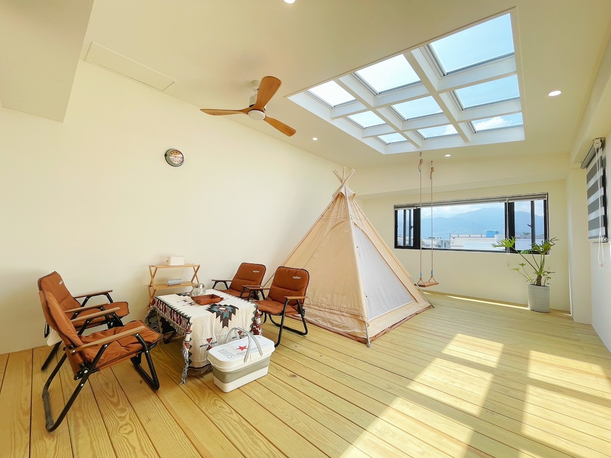 Laboratoire de voyage | Marché nocturne de Luodong à 1 minute. Appartement entier de 23 tsubos. Grand espace de cuisine. Excellent éclairage. Calme au milieu de l'agitation. Expérience touristique approfondie à l'intérieur et à l'extérieur