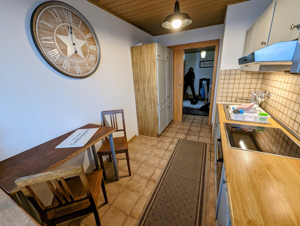 Situé directement à côté de la forêt, il offre un emplacement idéal pour les amoureux de la nature et les personnes en quête de détente. L'appartement est décoré avec goût et offre tout le confort nécessaire pour passer un agréable séjour. Avec sa proximité avec les foires de Cologne et Düsseldorf, il est aussi parfait pour les voyageurs d'affaires. Découvrez la combinaison parfaite du calme et de la proximité des centres urbains – une véritable retraite après une longue journée. Réservez dès maintenant et profitez des avantages de cet appartement unique !