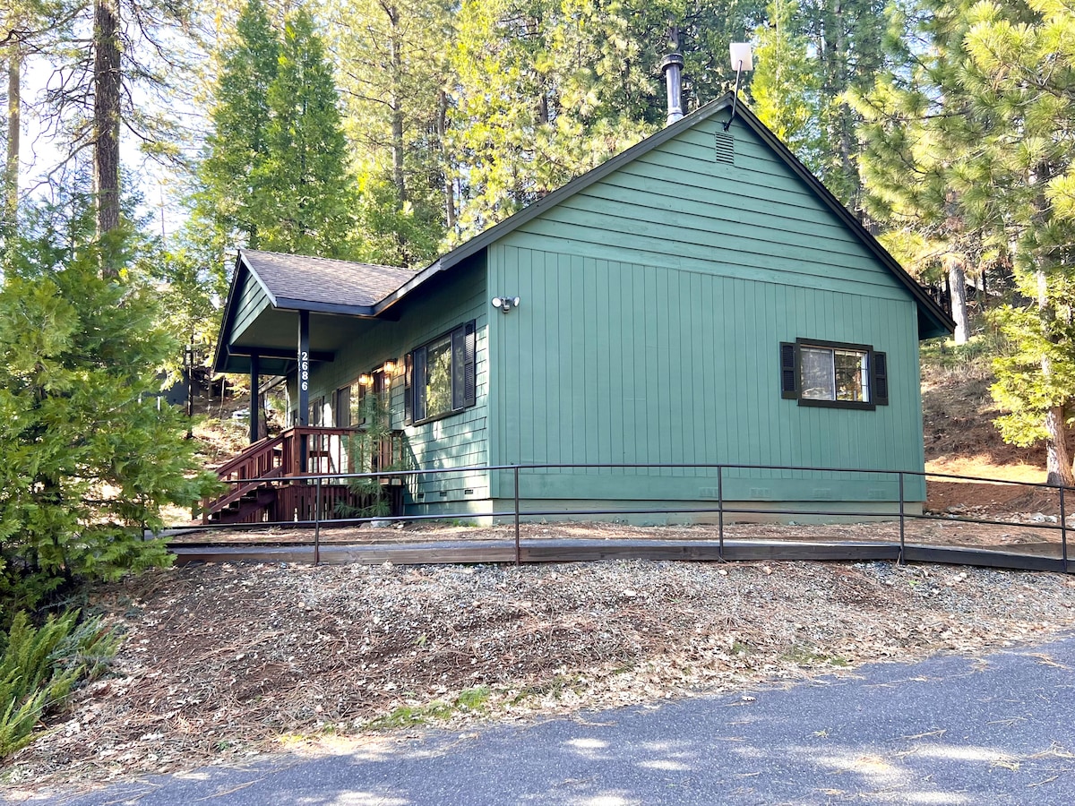 Bienvenue à Cabin Ponderosa ! Cabane confortable récemment rénovée nichée à Arnold, CA. Le chalet est entouré de pins Ponderosa des Sierras. Avec son haut plafond en pente et ses grandes fenêtres vitrées, vous pourrez vraiment apprécier la sérénité du plein air. - À 4 minutes des équipements exclusifs de Blue Lake Springs (piscine, lacs privés, restaurant, aire de jeux) - À 8 minutes du parc d'État Calaveras Big Trees - À 30 minutes du Spicer Sno-Park - À 35 minutes du lac Alpine - À 40 minutes de la station de ski de Bear Valley