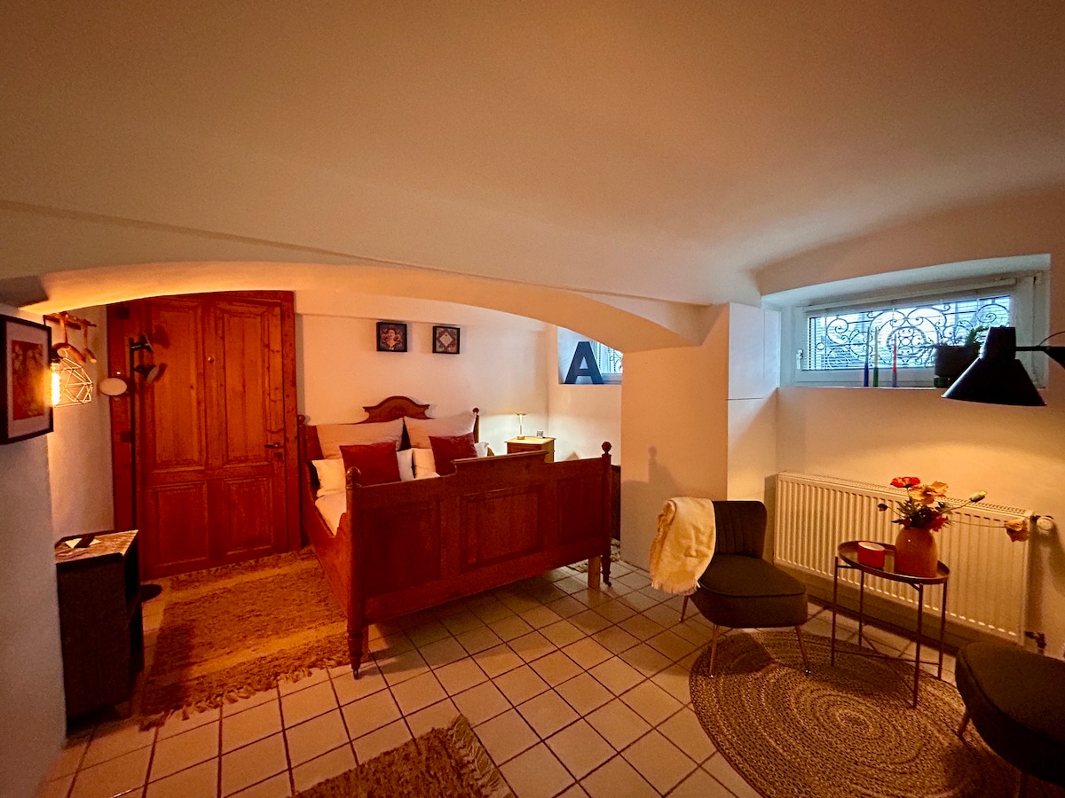Bienvenue à Briller Gewölbe, un lieu de caractère. Vous pouvez vous attendre à une salle de fitness séparée, exclusivement pour vous, une cuisine entièrement équipée et une salle de bain moderne avec des jets de douche bien-être pour des moments de détente. Nous pensons également aux familles : nous mettons volontiers un lit bébé à disposition si nécessaire. Nous nous réjouissons de vous accueillir dans la voûte Briller.