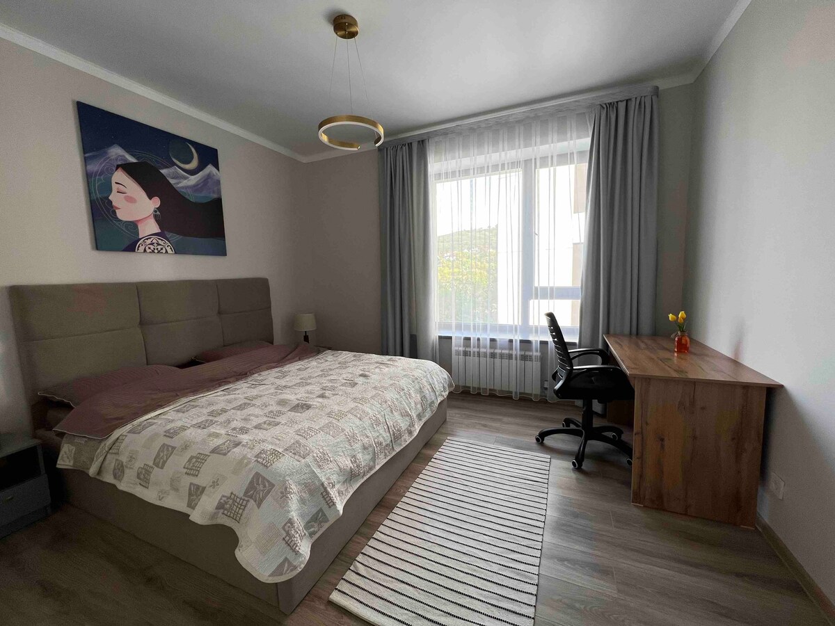 Enjoy your stay in the city centre with a panoramic view of the Zailiyskiy Alatau mountains. Stylish flat in the Arbat business class residential complex, located in the historical centre of our city.