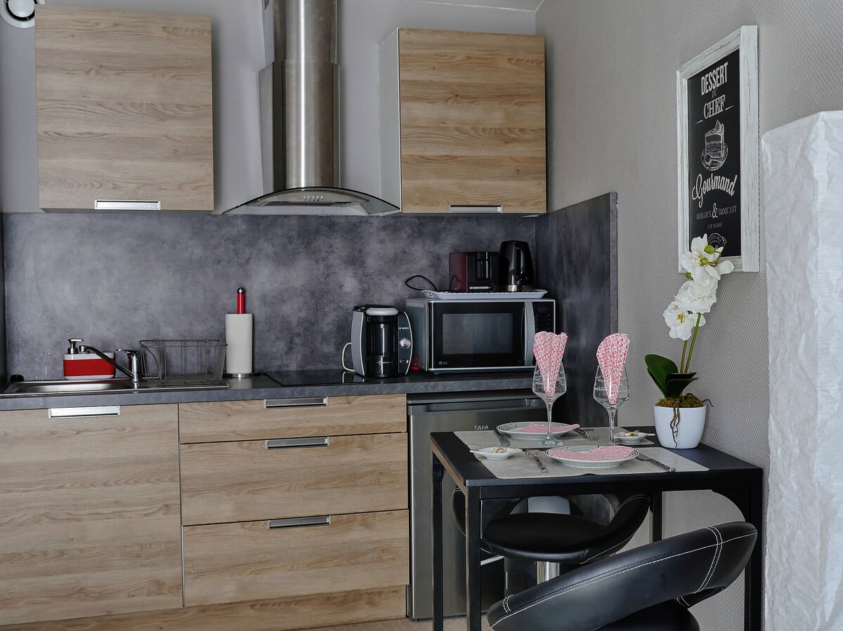 A 100 m de la magnifique plage des Sables Blancs et de la thalasso de Tréboul, ce superbe T2 de standing de 32 m2 refait à neuf avec de très belles prestations vous accueillera au 1er étage sans ascenseur. Il est ouvert sur une terrasse de 5m2 et est tout équipé avec un lit king size 1.6mx 2m, lave linge, lave vaisselle, frigo congélateur, Nespresso, four multifonctions, TV 117cm, grille pain... Canapé-lit du salon 140x190. Belles vacances. Kristell 😀