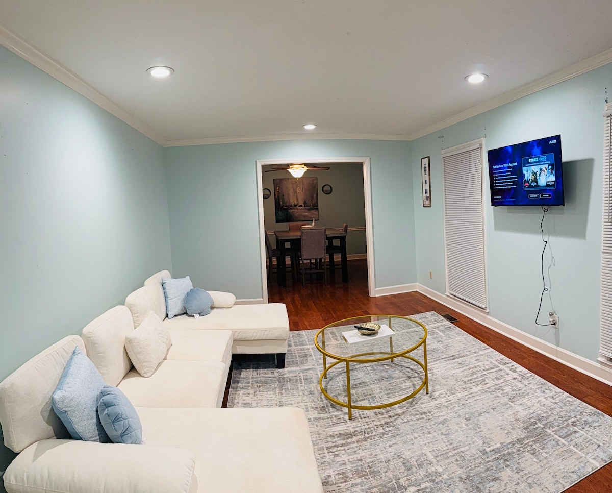 C'est une belle maison de 3 chambres avec 2 lits Queen et 1 lit King. Il est également équipé de 2 salles de bains complète. Il y a une Smart TV dans chaque pièce de la maison, ce qui vous permettra de regarder certaines chaînes (si vous avez un compte, vous pouvez accéder à Netflix, Hulu, Amazon Prime). Wifi haut débit dans toute la maison. Cuisine complète pour cuisiner et lave-linge/sèche-linge à l'intérieur de la maison. Tout ce dont vous aurez besoin pour vous sentir chez vous. Cette maison est entièrement nettoyée après chaque locataire.