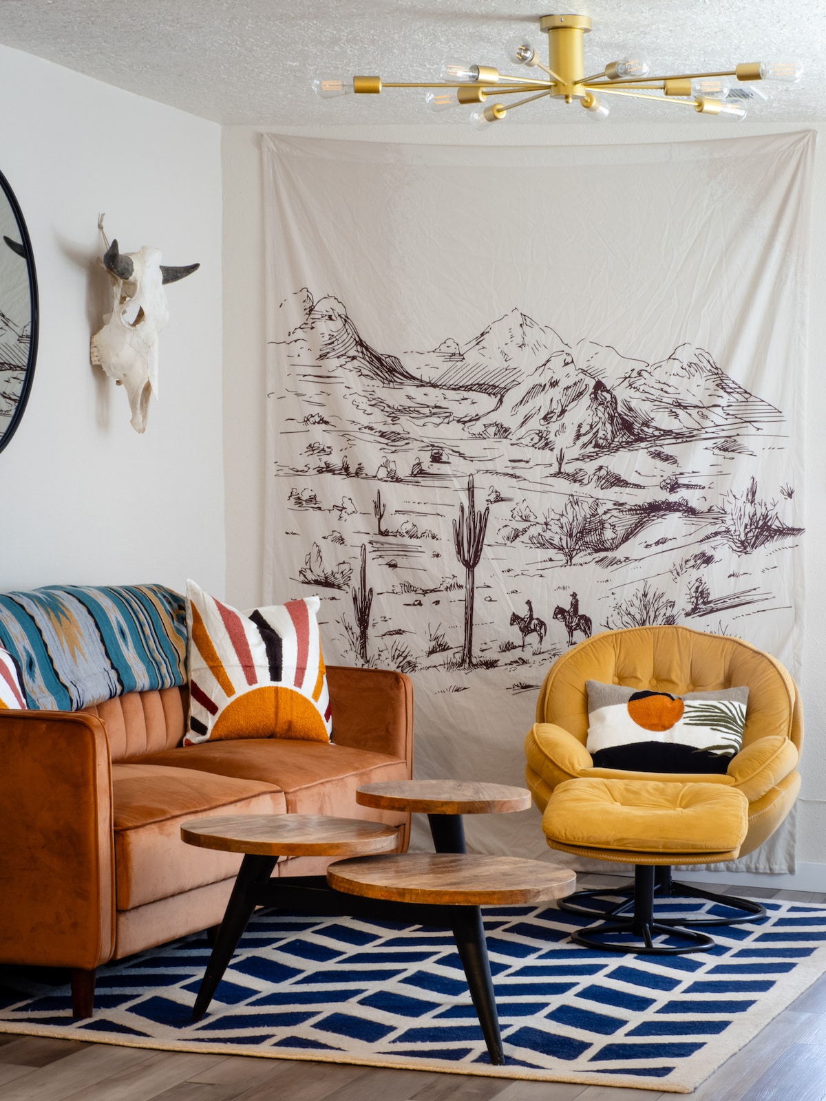 Luxurious upstairs 2 bedroom with large private balcony overlooking the park, local artwork, memory foam mattresses (1 king in 1st bedroom, 2 full in 2nd), rich textures, stained glass, vintage gold mirrors, marble details, unique historical accents, and a hint of a French victorian / wild west saloon vibe. Enjoy the hot tub (year round), cowboy pool (May-Sept), fire pit, gardens, & secure parking at The Desert Compass property. * This property is not suitable for pets or children under 12.