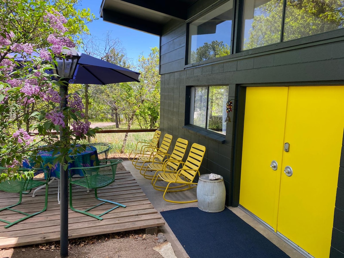 « L'endroit est tellement cool que vous avez vraiment l'impression d'être dans un tableau. » Une oasis privée à énergie solaire riche en caractère. Chauffage par le sol, climatisation par fenêtre, lit Queen Size somptueux, douche, kitchenette, télévision 50", Wi-Fi, chaînes de streaming, café et thé. Chargeur L2EV. 420 friendly ; patio privé. (Pas de cigarettes s'il vous plaît.) Recherchez « eco-art-home » pour mon autre annonce. Nommé parmi les « 20 meilleures locations de vacances épiques à Colorado Springs » Springs » par Broke Backpacker et 1 des « 3 des Airbnb les plus uniques à Colorado Springs » par Springs Mag, 2023