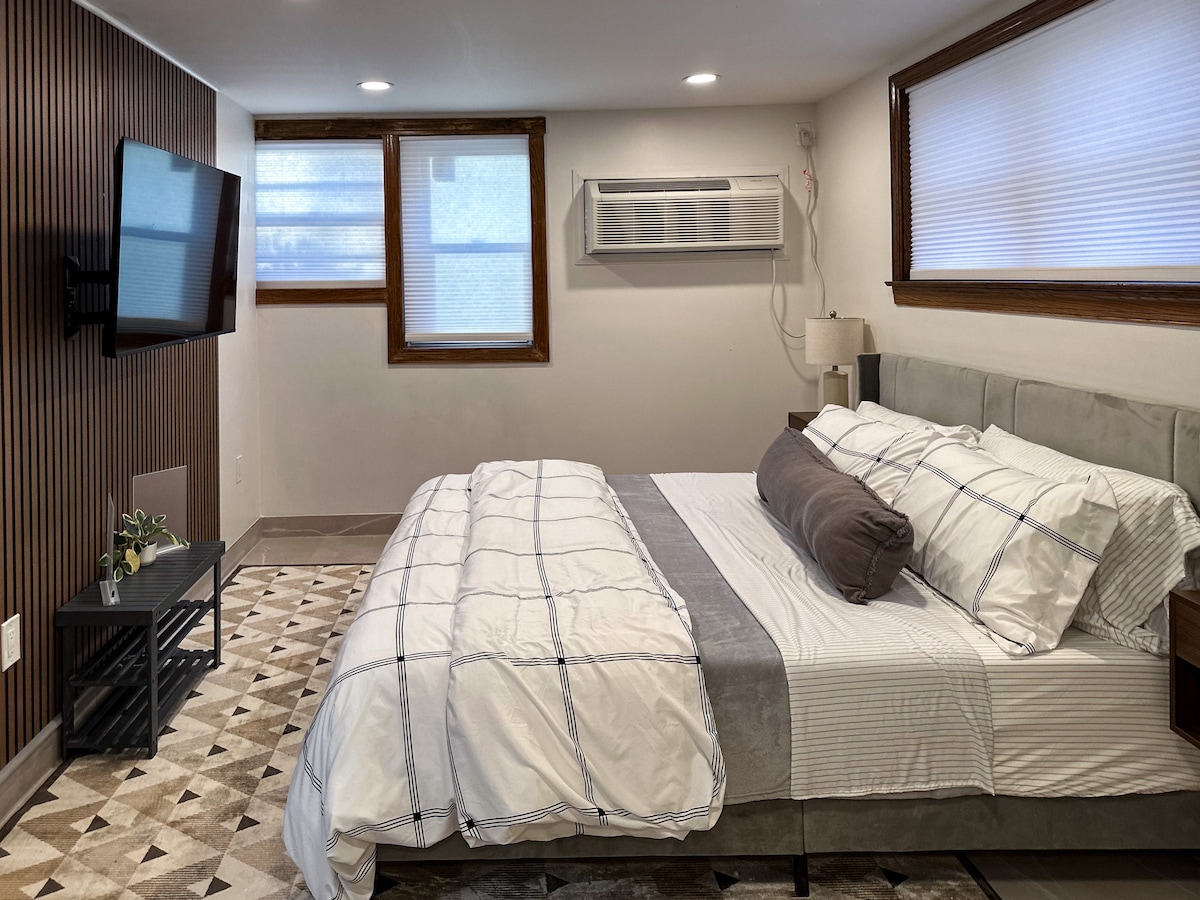 Profitez d'un studio confortable et bien aménagé avec un lit queen size et un coin salon/séjour pour se détendre ou travailler. La kitchenette comprend un four à micro-ondes et une cafetière/théière, parfaits pour les repas légers ou les collations. Restez connecté avec le Wi-Fi haut débit gratuit dans tout l'espace. Idéal pour un maximum de 2 personnes, ce studio offre des équipements modernes dans un aménagement compact et confortable, parfait pour les voyageurs en solo ou les couples dans le centre-ville de Detroit.