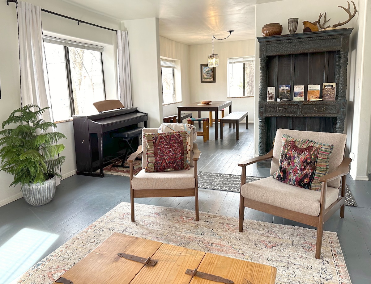 Ne cherchez pas plus loin ! Le Downtown Casa est perché juste à la limite du centre-ville, vous pouvez donc marcher jusqu'à tous les magasins et restaurants sans entendre la foule de fin de soirée. Cet endroit est super mignon, propre et dispose de tous les éléments essentiels. Profitez de tout ce que Flagstaff et les régions environnantes ont à offrir tout en ayant un endroit super confortable où rentrer. Après la réservation, vous aurez accès à mon « Guide des habitants », qui répertorie tous nos endroits préférés pour dîner. Animaux acceptés, veuillez lire toute l'annonce.