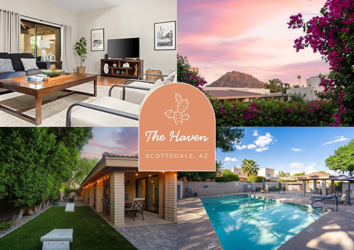 ➳ Marchez jusqu'au cœur de la vieille ville en 2 minutes (au sérieux, aussi bon que possible) ➳ Vaste jardin avec piscine chauffée et jacuzzi spacieux Espace de vie extérieur➳ infini avec foyer, barbecue au propane et coin repas. ➳ Deux généreuses suites principales et trois salles de bain ➳ Mur pliable dans le salon pour un espace intérieur-extérieur Vous recherchez quelque chose d'un peu différent ? J'ai 8 autres logements très bien notés à Scottsdale, tous à 5 minutes ou moins de la vieille ville. Cliquez sur mon profil d'hôte pour explorer !