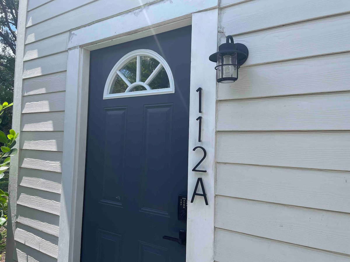 Le bungalow de plage vous accueille en Floride. Son extérieur bleu vous permettra de savoir que vous êtes au bon endroit. Votre suite de plage se trouve à l'arrière de notre maison, elle est vieille donc les murs peuvent être minces. Cet espace dispose de tout ce dont vous aurez besoin pour une escapade de week-end, y compris un mini-réfrigérateur et un micro-ondes. Il offre les commodités que l'on trouve dans les hôtels avec tout le caractère d'un séjour dans un bungalow floridien des années 1920. Il y a un bureau et une chaise pour travailler à distance, un canapé pour se prélasser, un lit King Size et un patio fermé par une moustiquaire.