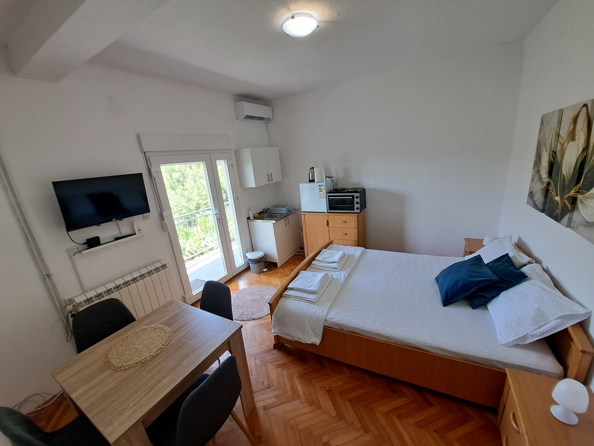 Notre appartement nouvellement construit peut accueillir jusqu'à 4 personnes (2+2).Il dispose d'une entrée séparée et d'une place de parking gratuite (car&boat). Il dispose d'une chambre, salle de bains, salon avec canapé-lit, cuisine et balcon avec vue sur la mer. Un accès Internet gratuit et un parking gratuit sont également disponibles
