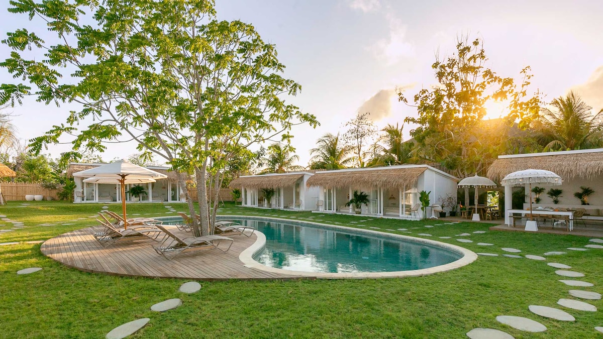 Chambre Deluxe 1 - Évadez-vous dans un sanctuaire privé. Cette retraite tropicale contemporaine dispose d'une piscine généreuse et d'un vaste jardin avec terrasse ensoleillée. Le design mélange le bois naturel, le béton brut et les tons terreux avec des touches de wabi-sabi, créant ainsi une ambiance sereine et naturellement fraîche. Parfait pour trouver l'intimité, l'équilibre et une connexion profonde avec la nature.