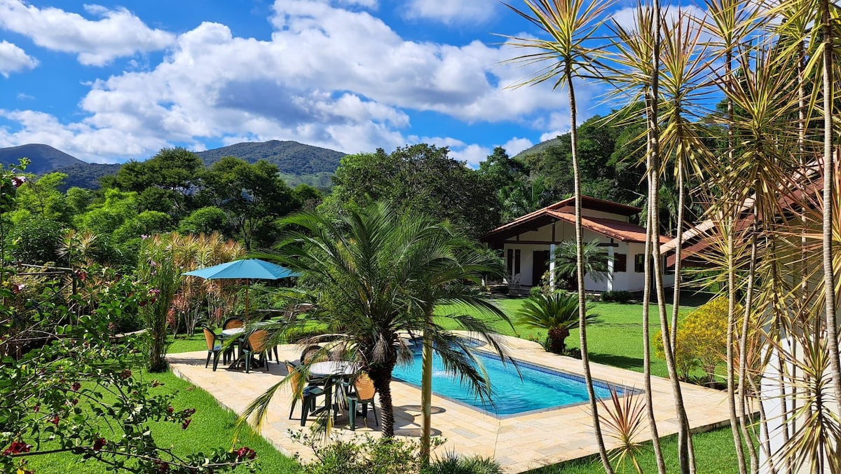 Détendez-vous dans cet espace calme et élégant. Sítio São João offre un espace unique, avec une maison d'une chambre, avec un lit double et un canapé-lit dans le salon, et un charmant chalet avec un lit double. Cuisine complète. Peut accueillir confortablement 6 personnes, et un lit supplémentaire peut être installé si nécessaire pour plus de personnes. Randonnée, cascades, fermes historiques, écotourisme et culture. Idéal pour ceux qui recherchent le calme et la tranquillité dans la nature.
