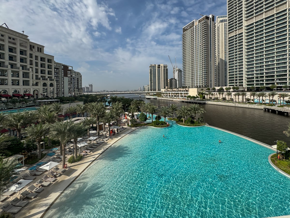 Arrivée autonome 24h/24 ! Arrivée à tout moment ! Hôtes réactifs, excellent emplacement ! Voici votre retraite privée ultime à Dubai Creek Beach ! Un appartement magnifiquement conçu d'une chambre avec canapé qui se déplie pour accueillir 2 petits enfants et un lit bébé est également inclus, situé à 50 mètres de Dubai Creek Lagoon au cœur de Dubai Creek Harbour, et à côté de l'hôtel Vida Dubai Creek. Calme et tranquillité pour les voyageurs d'affaires et les familles avec une plage privée et un lagon. À 20 minutes du centre-ville de Dubaï et de DXB