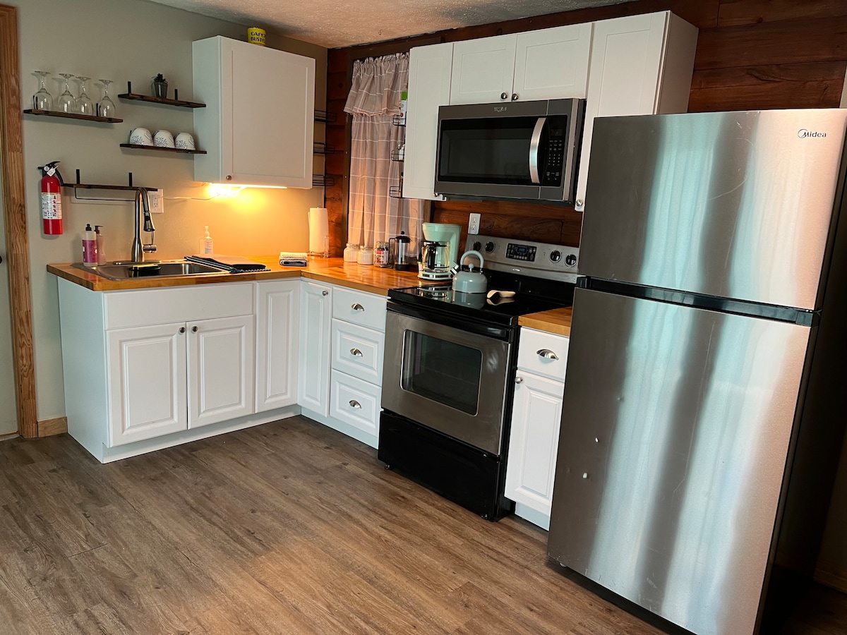 This 1 room cabin with kitchenette (2 top burner, small refrigerator, microwave, and coffee maker) with full bath is set on Toms Creek, fifteen minutes drive from Virginia Tech and the town of Blacksburg. The space itself is private, rustic and charming even though we live just next door. We thank you for no pets, vaping or smoking inside the cabin and we are happy to share that our onsite managers, Ray and Mara, will be handling all inquiries on our behalf.