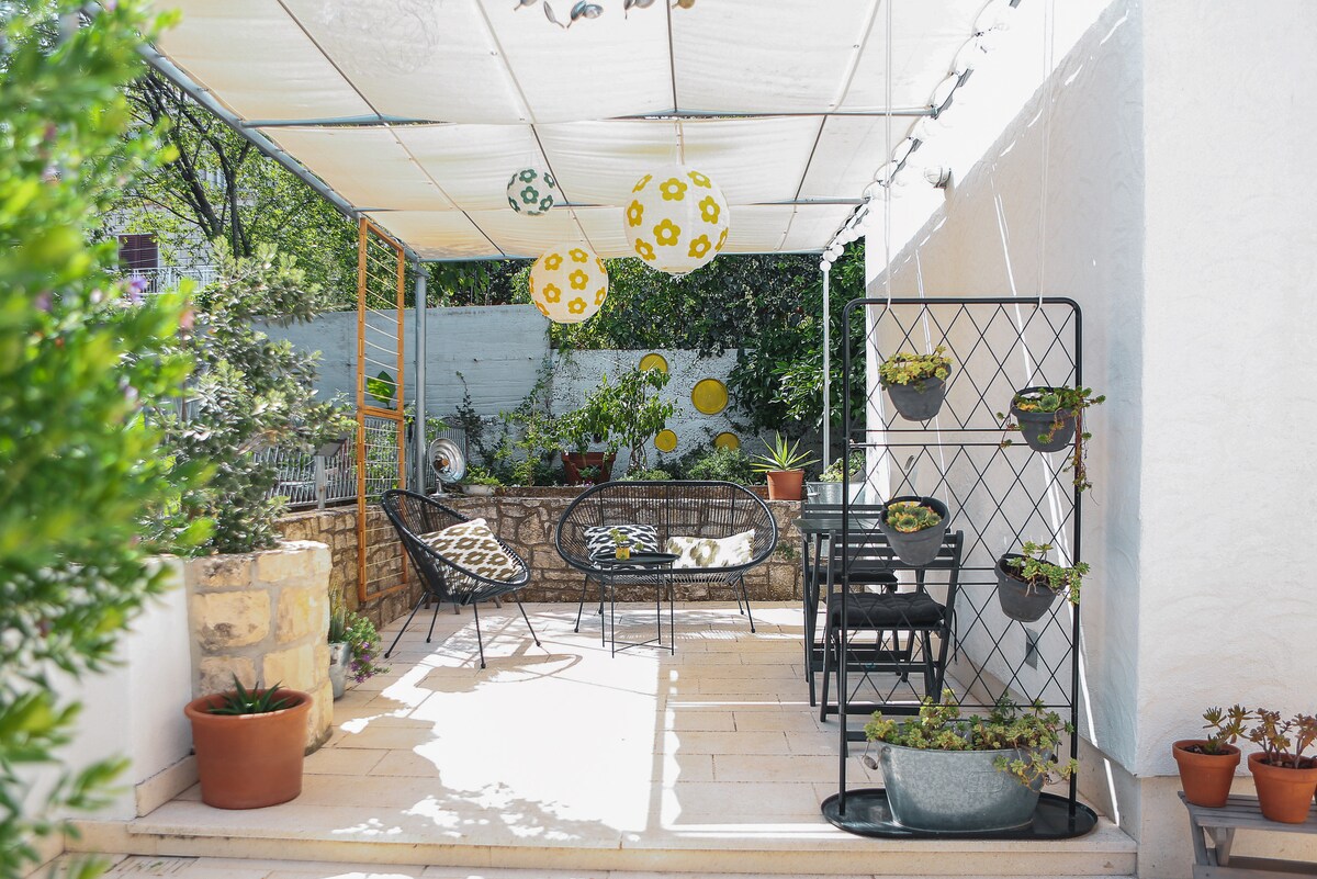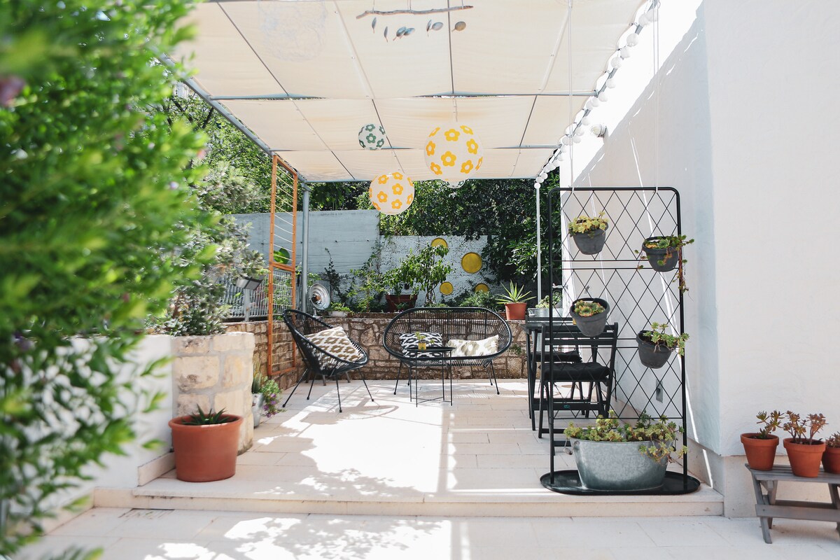 Réveillez-vous avec la douce lumière du soleil qui s'infiltre par les fenêtres et illumine l'élégant intérieur blanc de cette maison. Passez devant des détails chics tels que les plantes luxuriantes, les luminaires en bois et les carreaux de mosaïque tout en vous dirigeant vers la terrasse privée sur le toit.