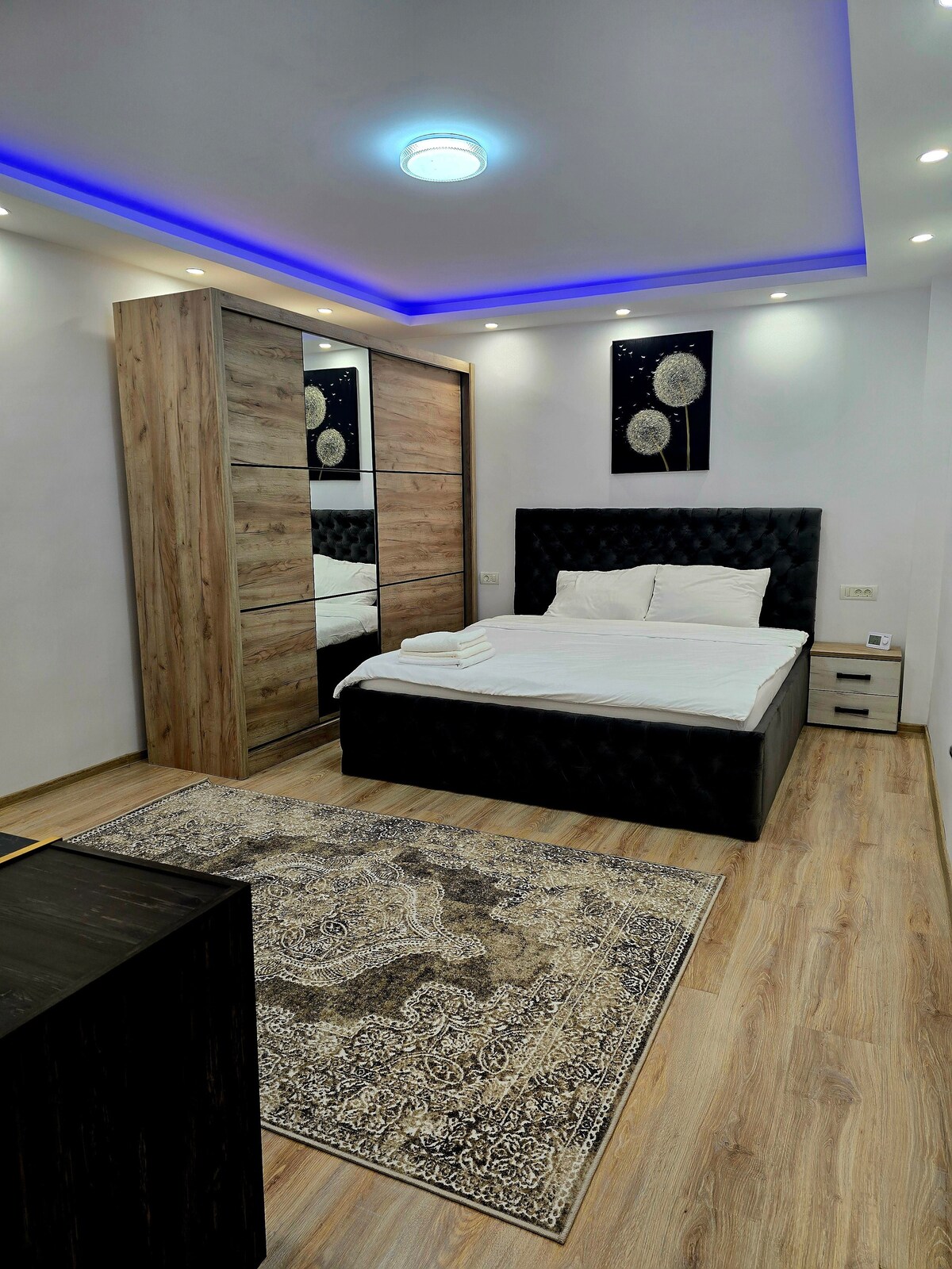 Vă invităm să vă bucurați de o experiență premium în cea mai exclusivistă zonă a Vasluiului, la doar câțiva pași de Parcul Copou. Suita dispune de dormitor elegant, imbinata cu un living luminos, zonă de lucru, bucătărie complet utilată și balcon cu vedere unica spre oraș de la etajul 3 al cladirii. Conexiune Wi-Fi rapidă, saltele premium, check-in rapid/online și parcare gratuita. Ideal pentru: călătorii de afaceri, profesioniști în deplasare, șederi pe termen scurt sau mediu.