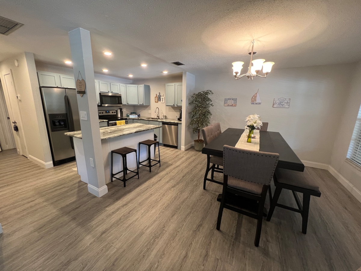 Jolie maison pittoresque avec 2 chambres, 1 salle de bain, située dans le centre-ville de Dunedin en Floride. Tous les meubles de la maison sont neufs. La salle de bain a été récemment rénovée et comprend une douche avec baignoire à jets. Salle familiale confortable avec télévision connectée à écran plat de 60" et canapé-lit. Nous avons un bureau et une machine elliptique, ainsi qu'une chaise confortable pour lire/se détendre dans la pièce supplémentaire à l'arrière. La cuisine est entièrement fonctionnelle, avec la plupart des commodités de la maison. Venez profiter de la charmante ville de Dunedin et passez un moment inoubliable !