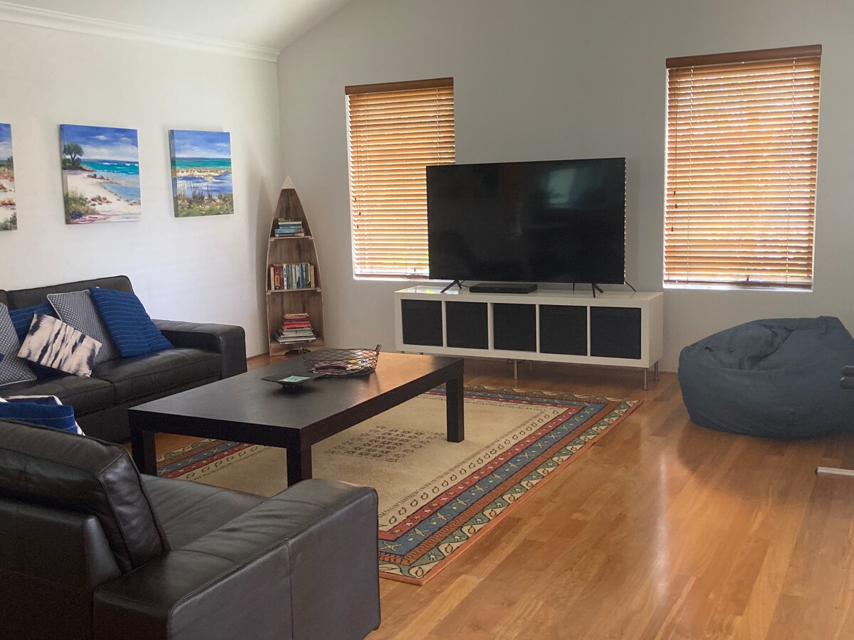 Situated in central Dunsborough in the Margaret River/Busselton region this home is modern, spacious, immaculate! Located on the beach side of Naturaliste Tce in a quiet cul de sac it's a 4 minute walk into town and the beach. Relax & enjoy the birdlife in the quiet, shady back garden, complete with bbq or explore the surrounding beaches & wineries. Linen & towels included. Double lock-up garage. Foosball game is popular for all ages! FREE WIFI Sorry we do not accept ‘leavers’ bookings.