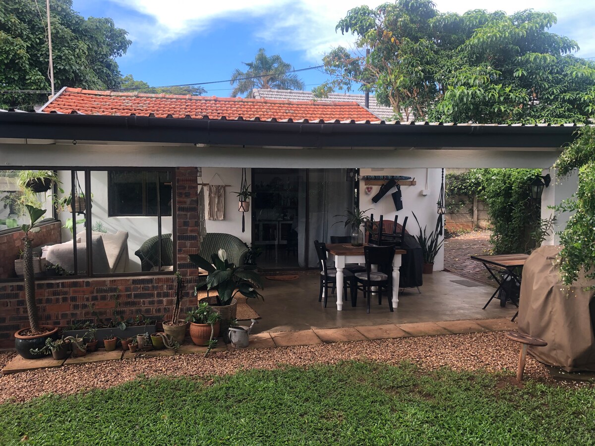 Un bel espace ensoleillé. Entièrement équipé avec tout ce dont vous avez besoin pour être comme chez vous loin de chez vous. Climatisation, Wi-Fi rapide, télévision, cuisine bien équipée et un espace de travail dédié si nécessaire. Situé dans la banlieue centrale de Westville, assez proche des commerces et des attractions populaires, mais positionné dans un jardin paisible plein de vie pour votre plaisir. Parking sécurisé sur place pour 1 ou 2 voitures disponible. La cour privée avec coin salon extérieur permet un environnement relaxant pour répondre à vos besoins de vacances ou d'affaires.
